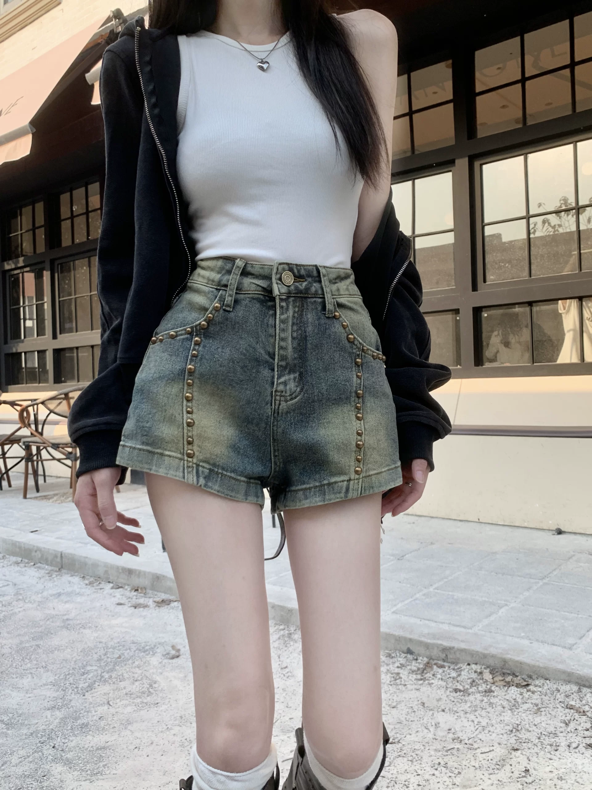| nameOriginal | Studded high-waisted wide-leg straight-leg hip-hugging denim shorts |