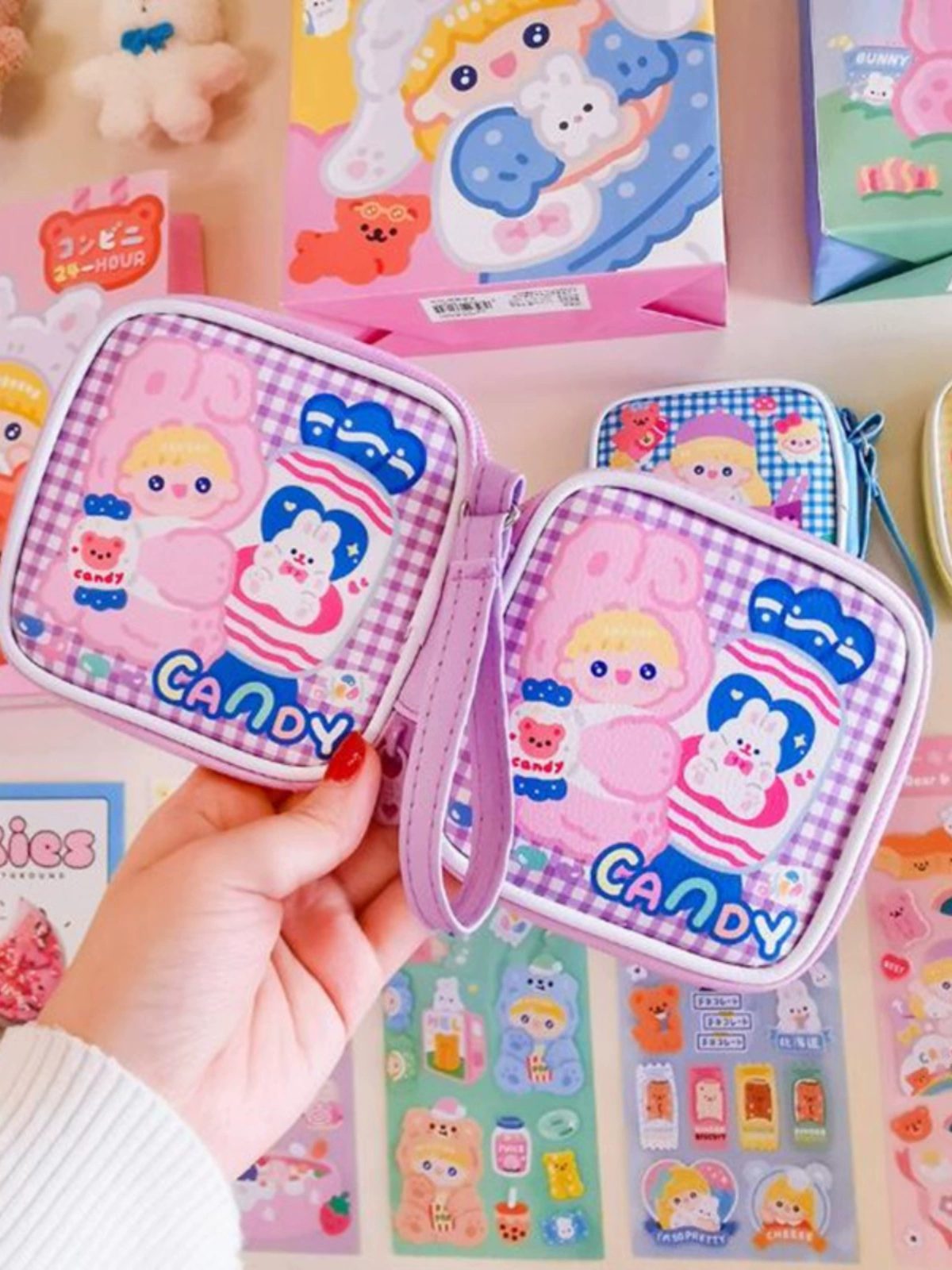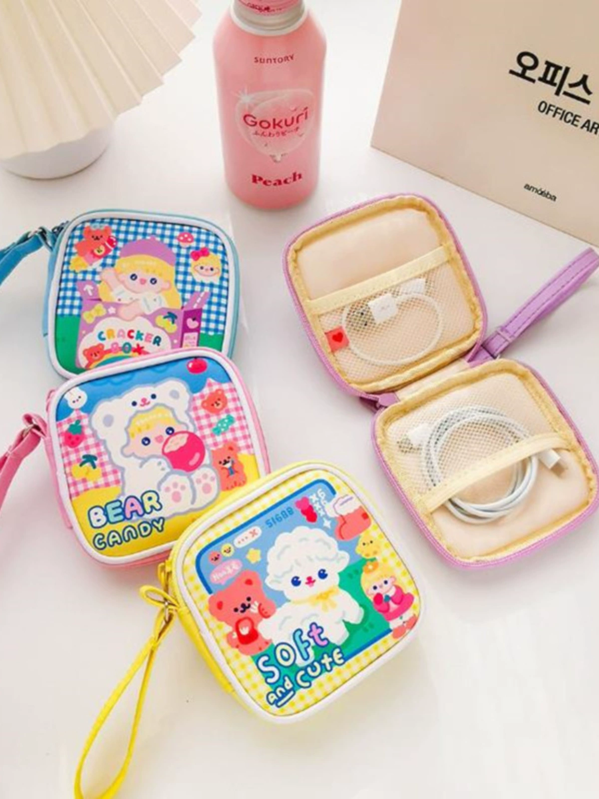 Student cute cartoon storage bag data cable protective cover girl headphone bag portable digital children's coin purse