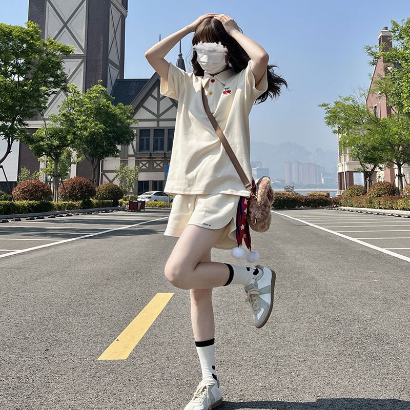 | nameOriginal | Student girl polo shirt sportswear suit women's summer college style casual loose short sleeve shorts two-piece suit |