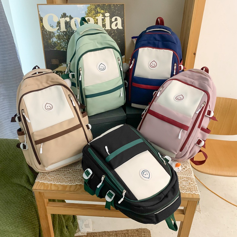 Student schoolbag women’s new Korean style simple ins style large capacity backpack casual all-match Smiley backpack