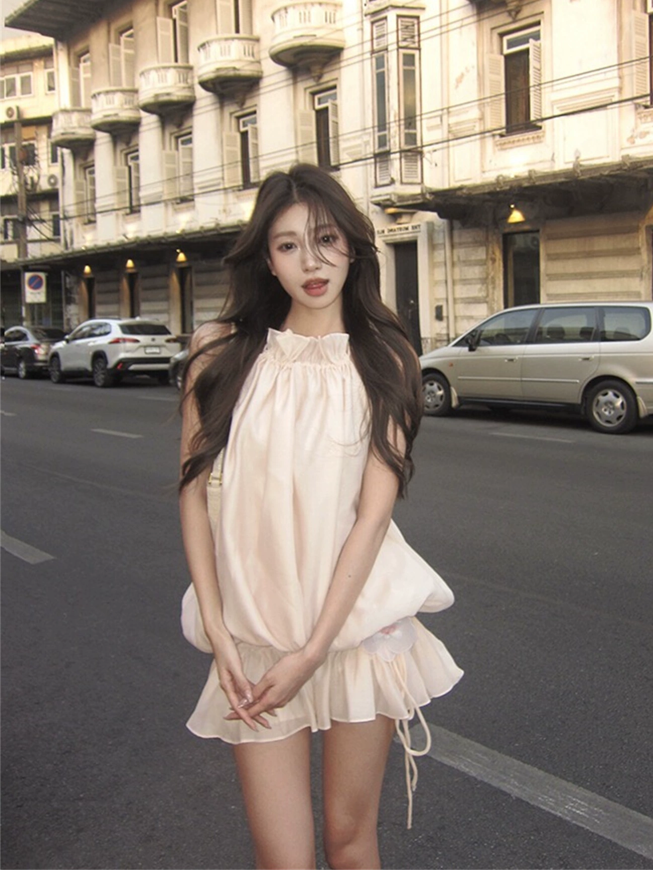 | nameOriginal | STUDIO playful age-reducing shoulder-shoulder halterneck short skirt satin |