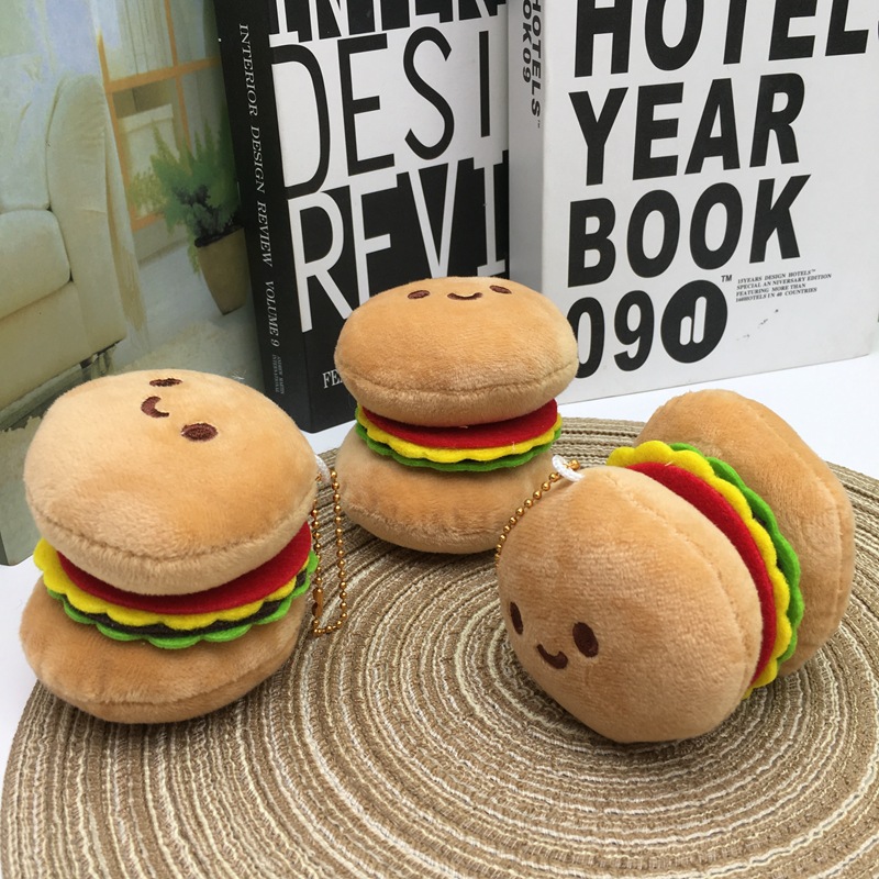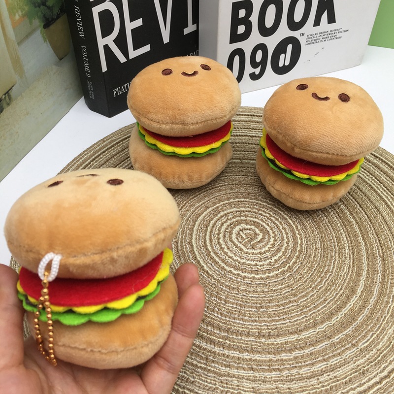 | nameOriginal | Stuffy little doll wholesale hamburger key chain bag pendant plush doll student reward doll machine small gift |