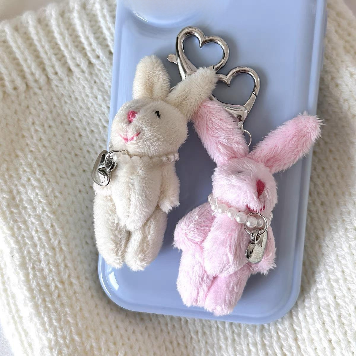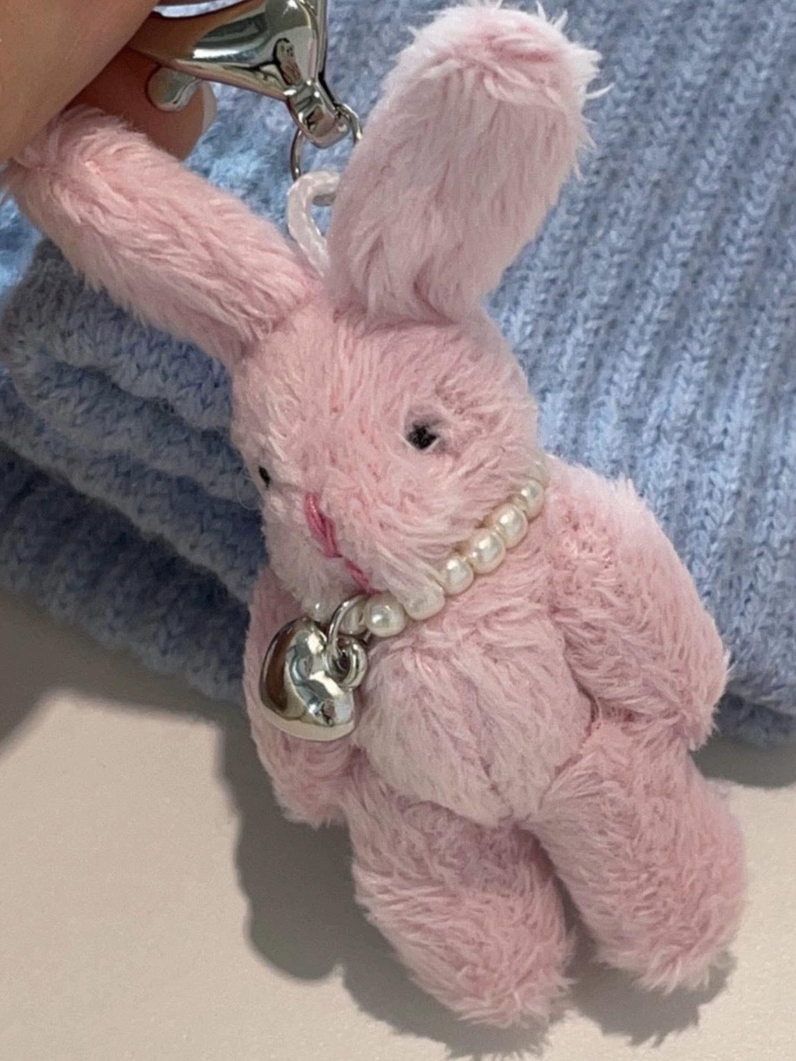 Stupid Girl Cute Rabbit Pendant Plush Doll Pearl Love Pendant Doll Bag Hanging Accessories Keychain