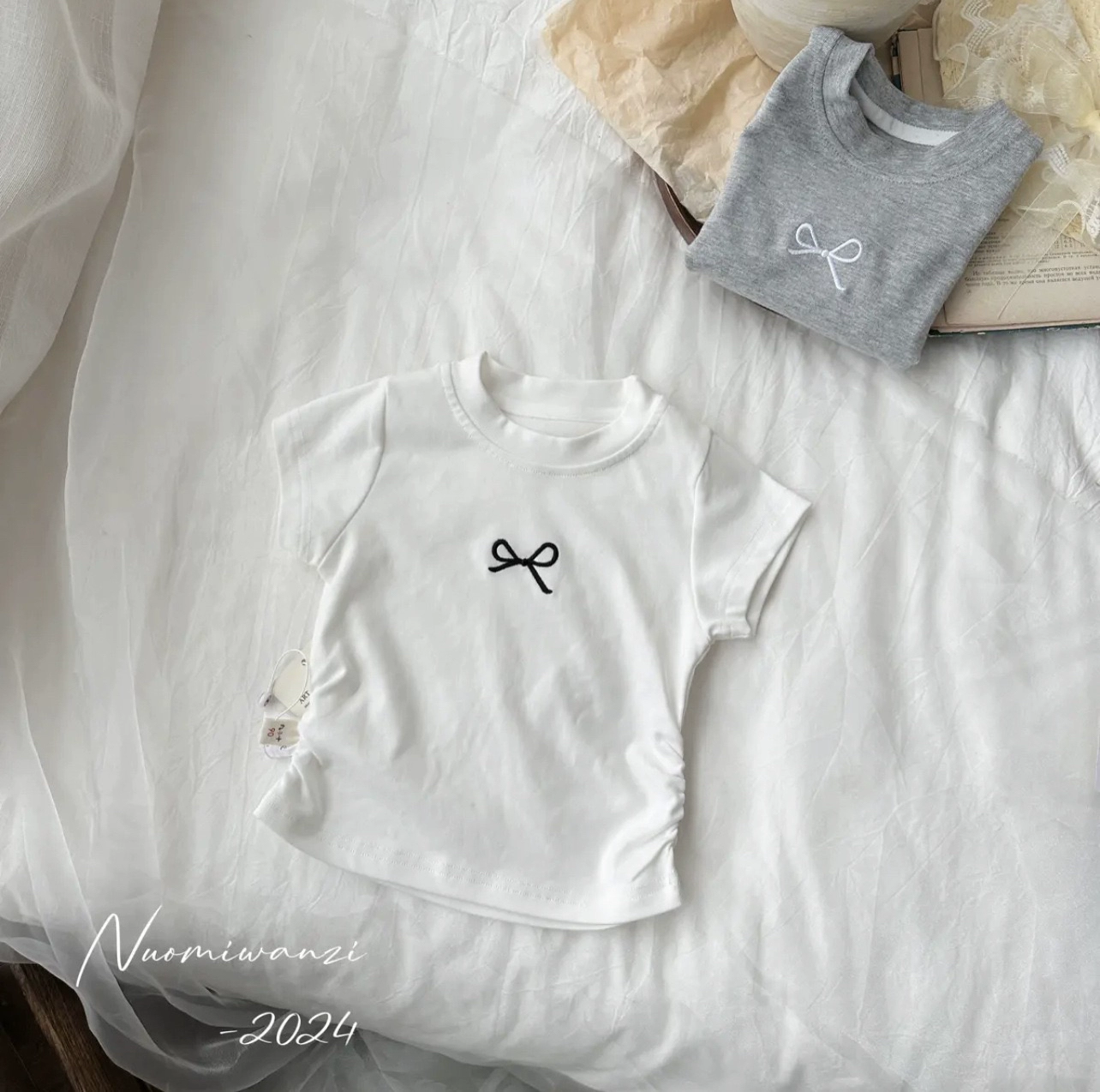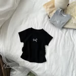 Fashionable bow with round neck short half-sleeved parent-child outfit