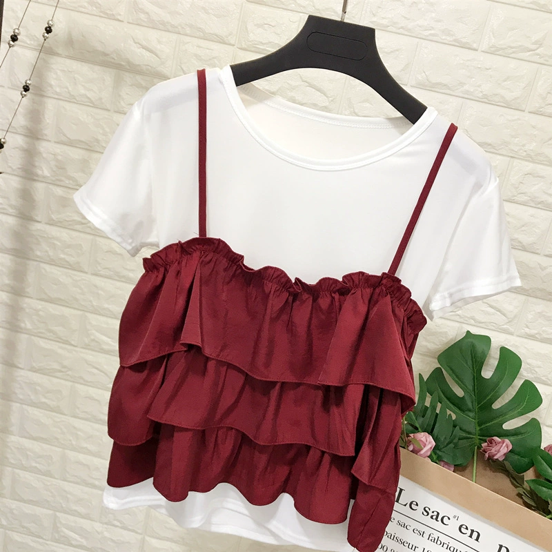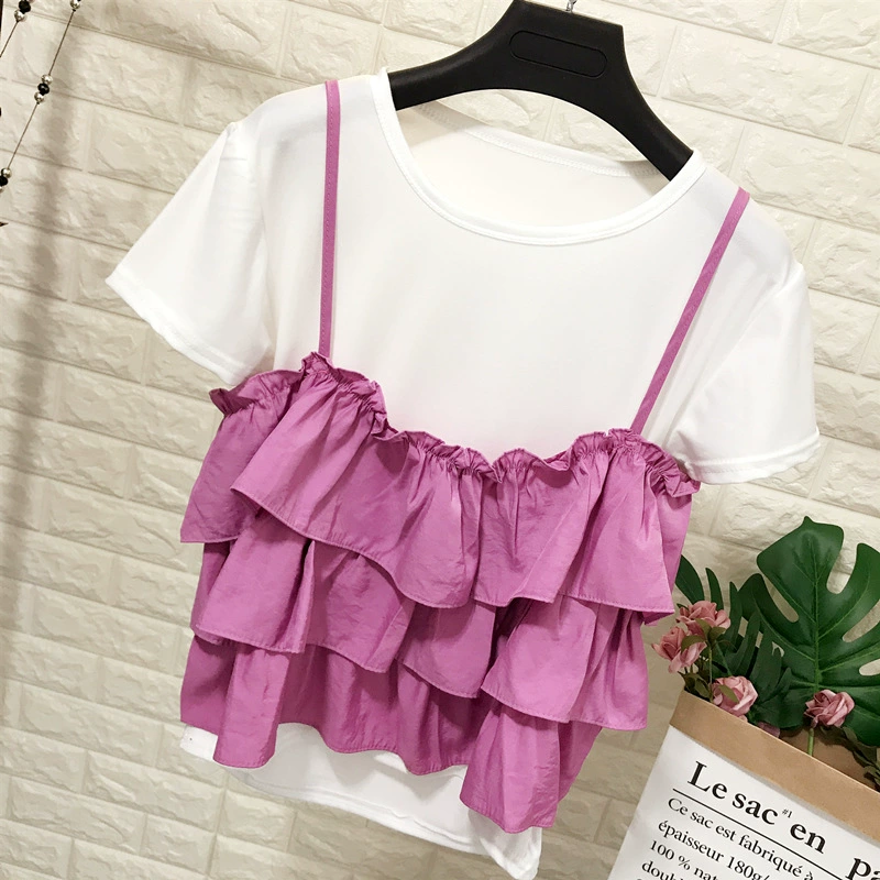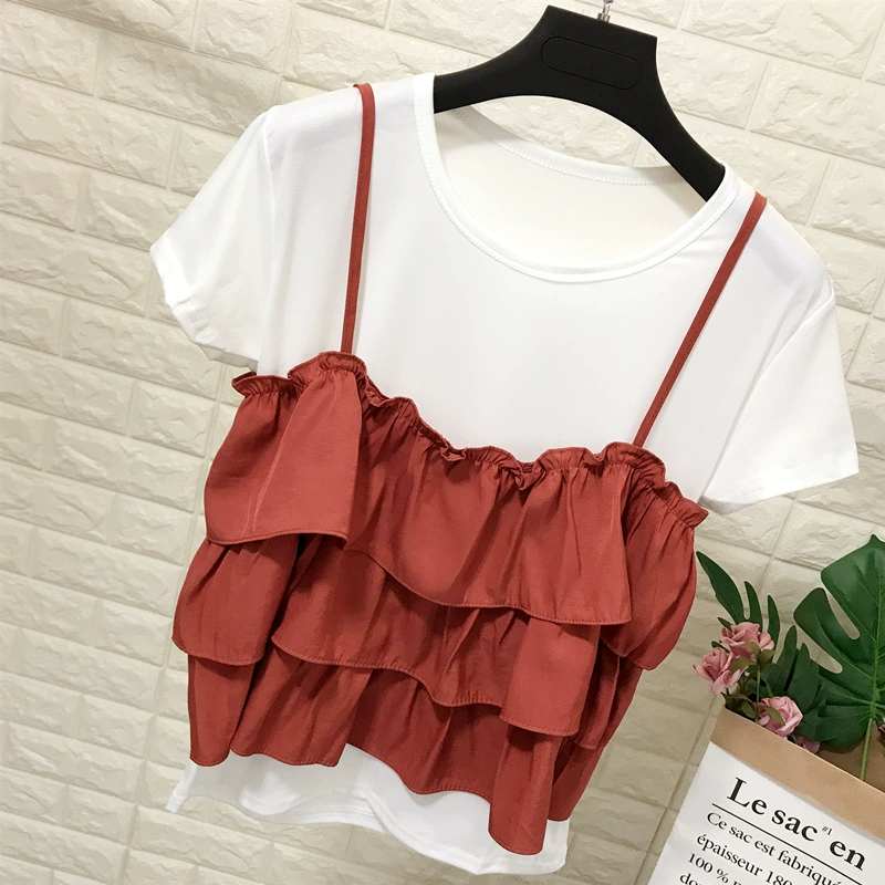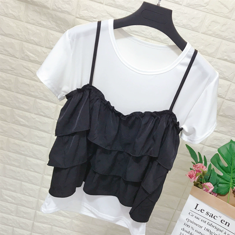 | nameOriginal | Style layer cake ruffled short-sleeved T-shirt suspenders |