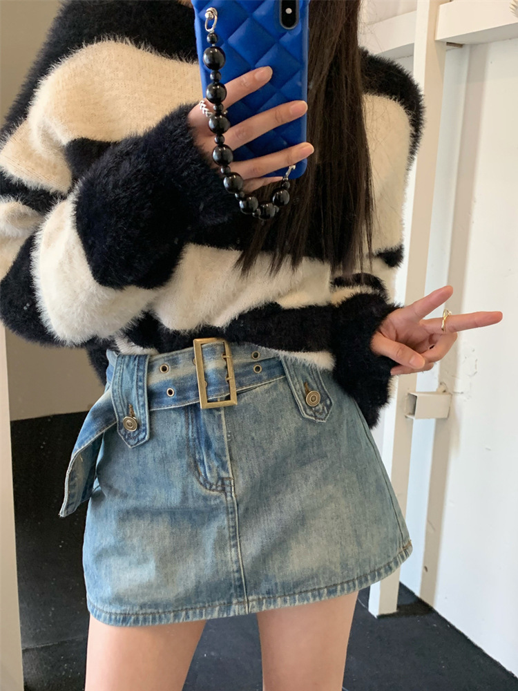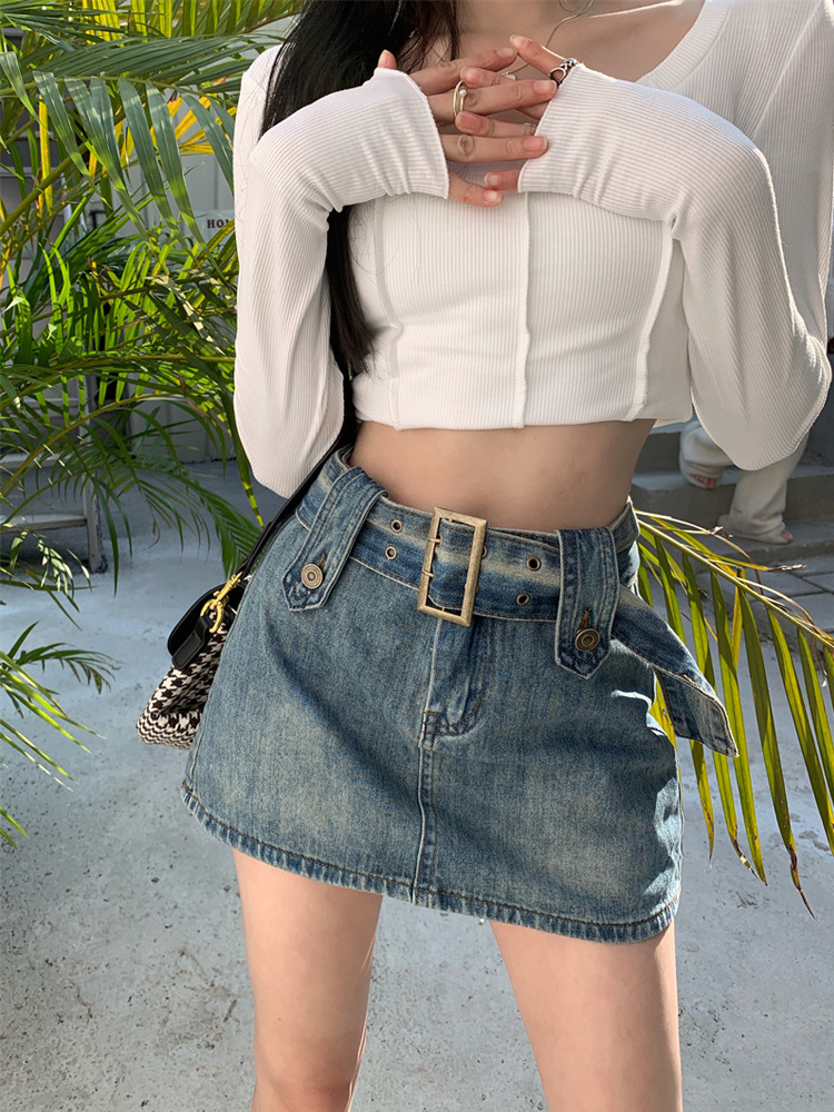 Style Retro Hot Girl Short Skirt Denim Skirt Women’s Summer Black High Waist Niche Skirt Hip Skirt A- line Skirt