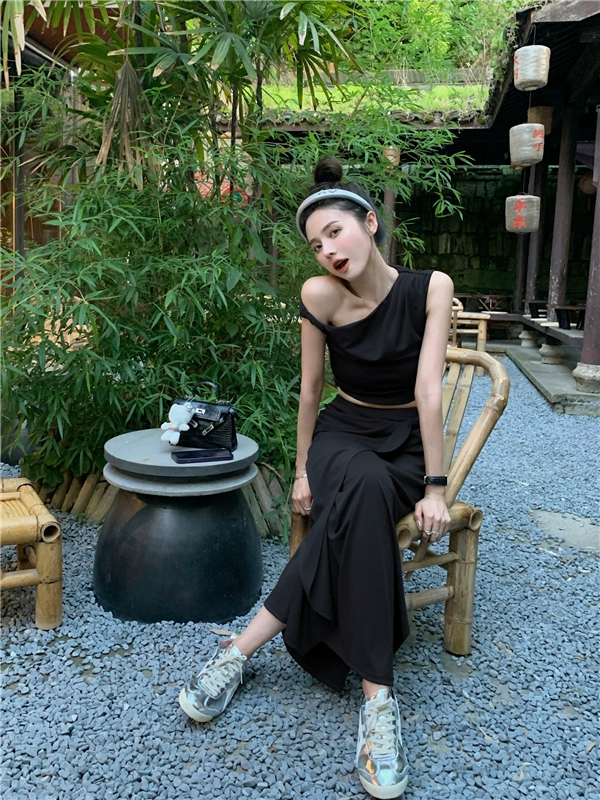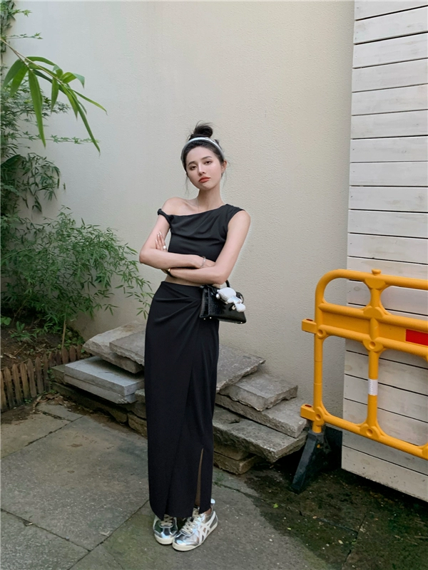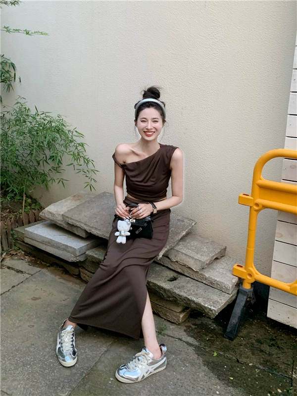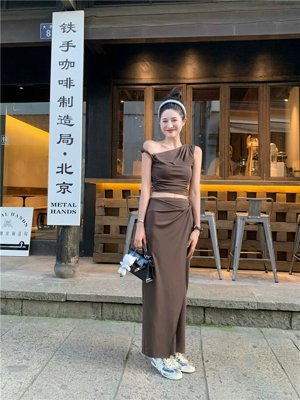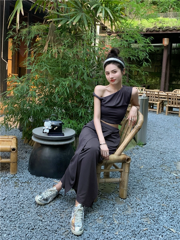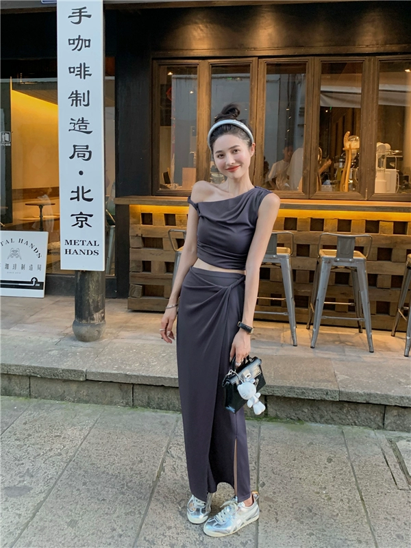 | nameOriginal | Stylish twisted asymmetrical slit skirt top |