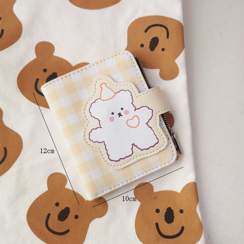 Su Zaizai’s same ins style cartoon bear plaid cute short coin purse female pu card bag with zipper