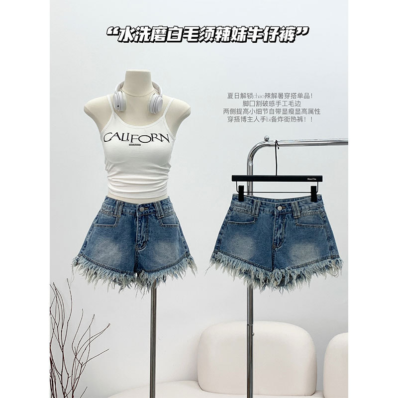 | nameOriginal | SU11 Washed White Jeans Women's Hair and Beard Niche Design light blue Slim Look All-match Casual Shorts |