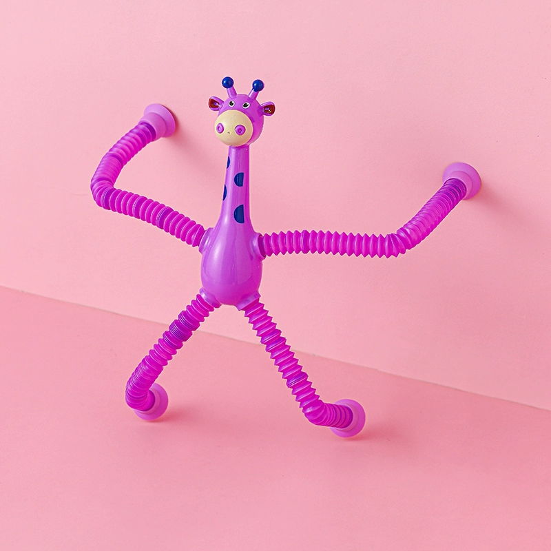 Suction cup giraffe ever-changing luminous cartoon telescopic children’s baby educational parent-child interactive stretch tube decompression toy