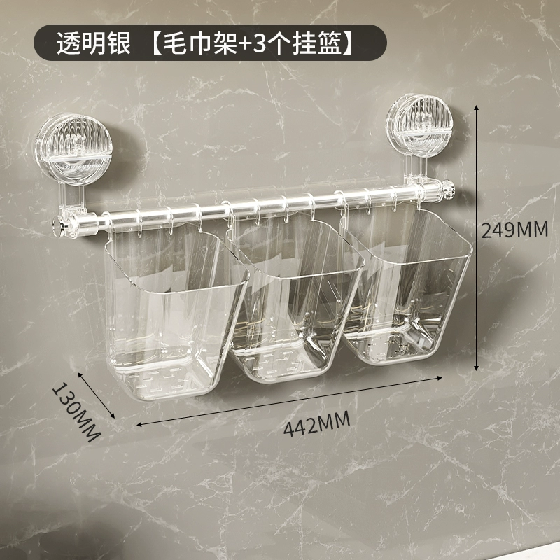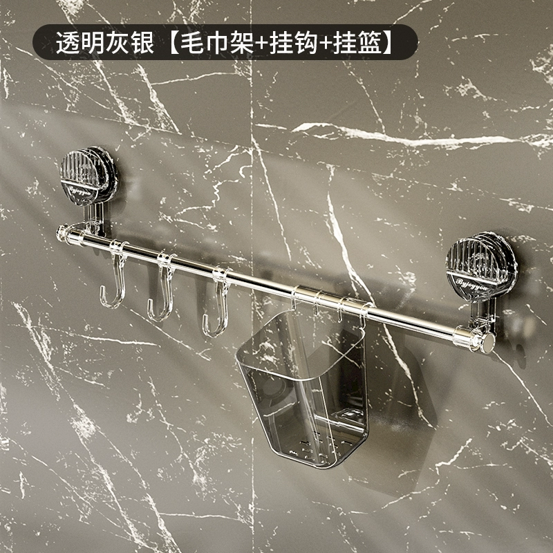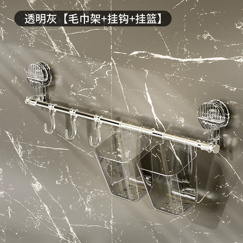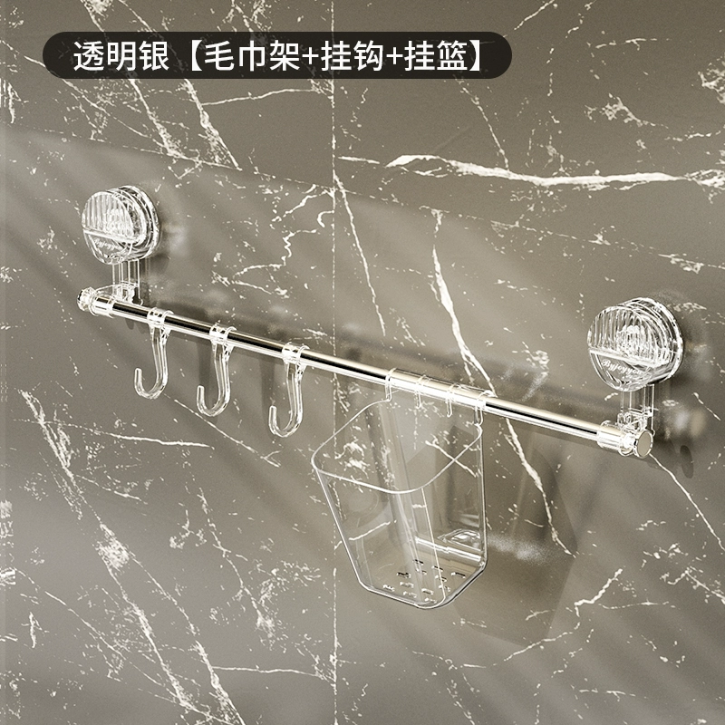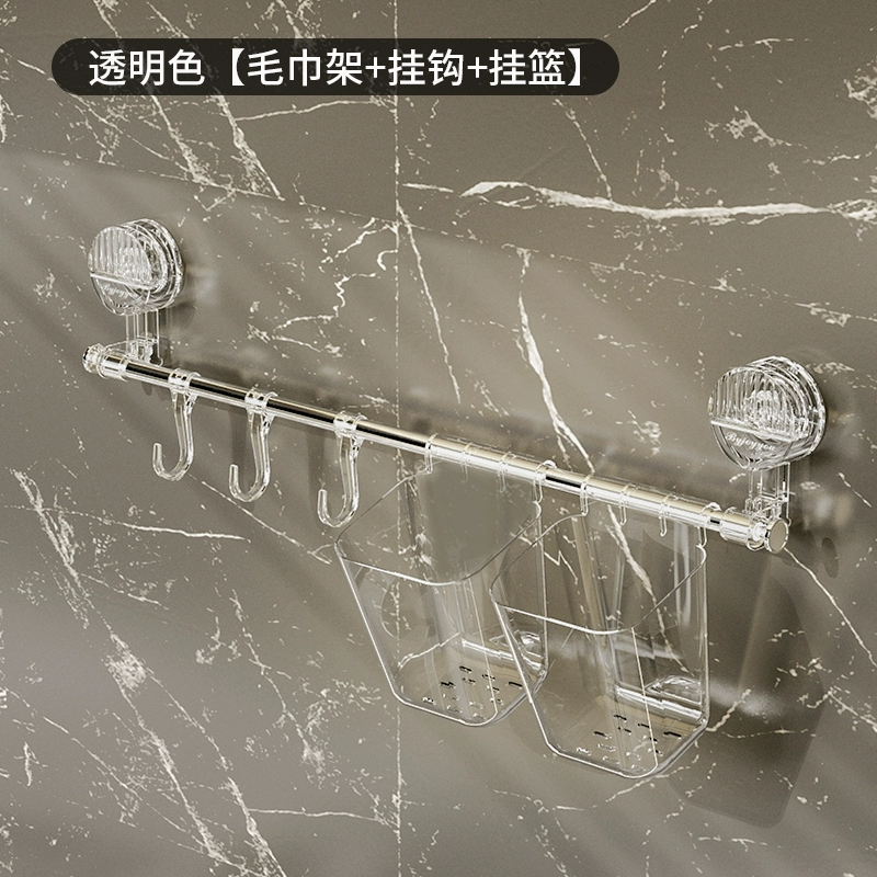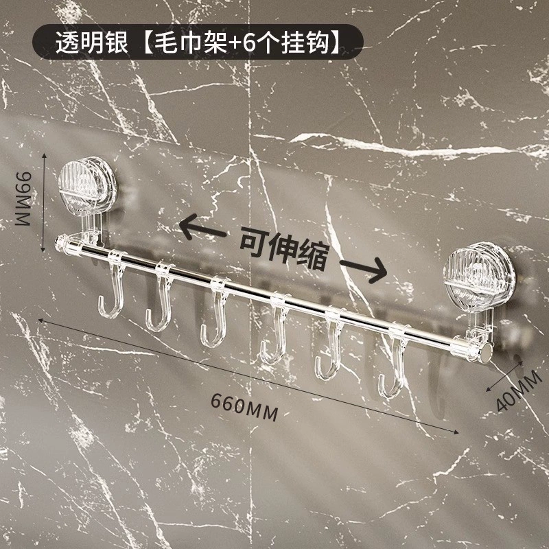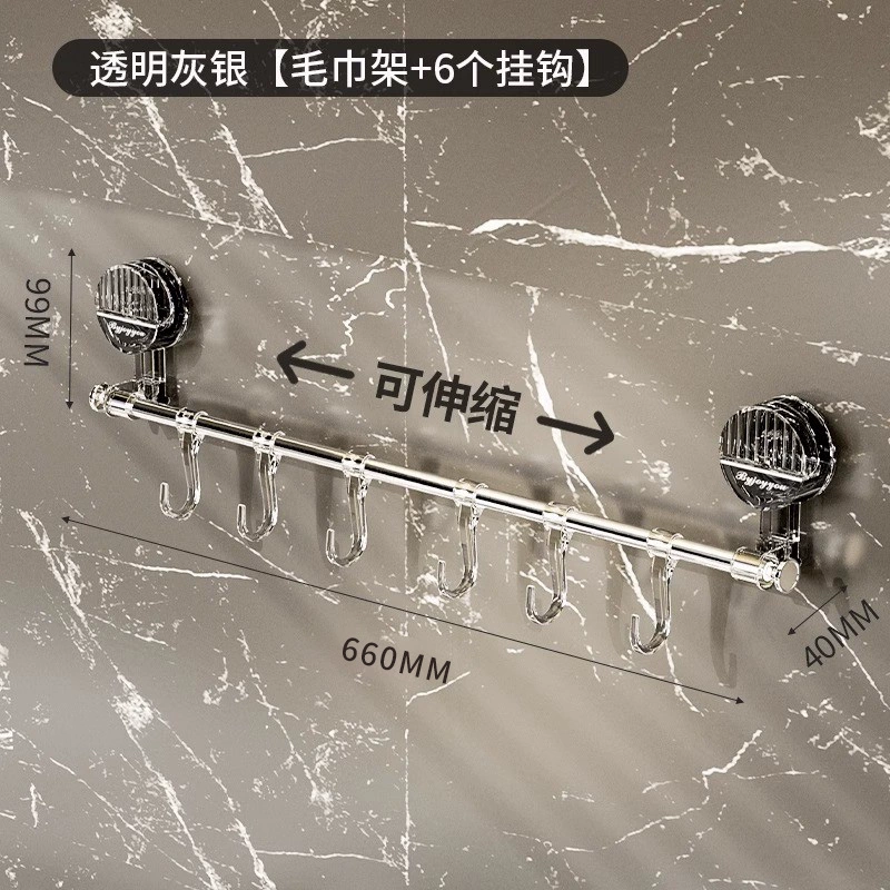 Suction cup towel rack corner telescopic punch-free bathroom toilet rack single pole kitchen hook hanging rod hanging basket