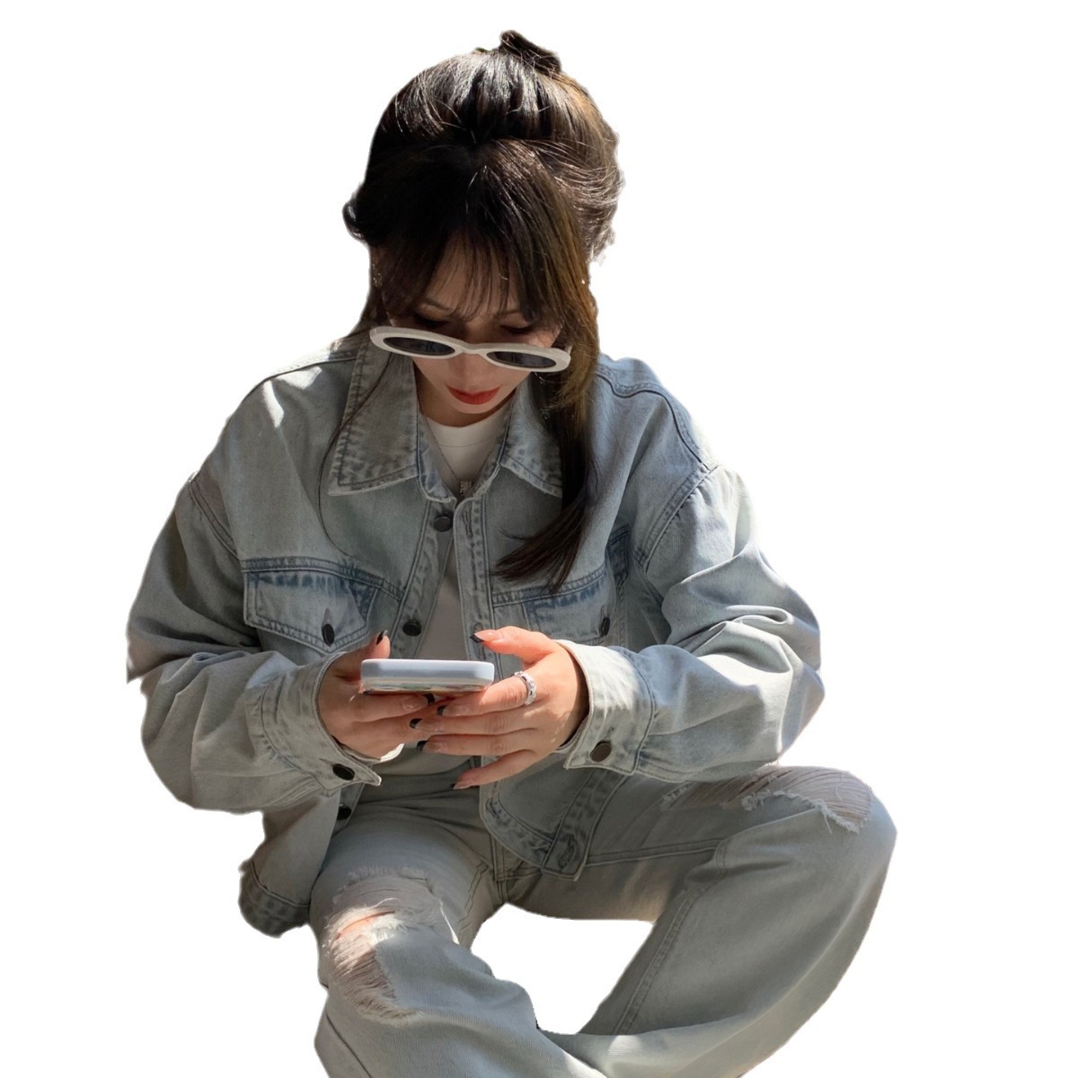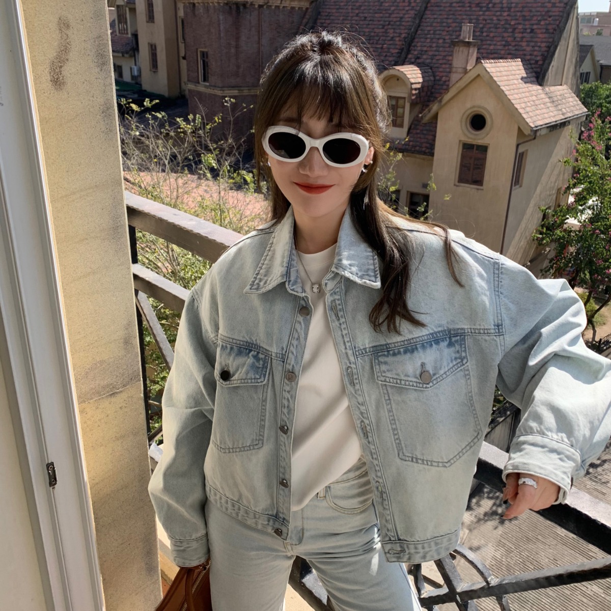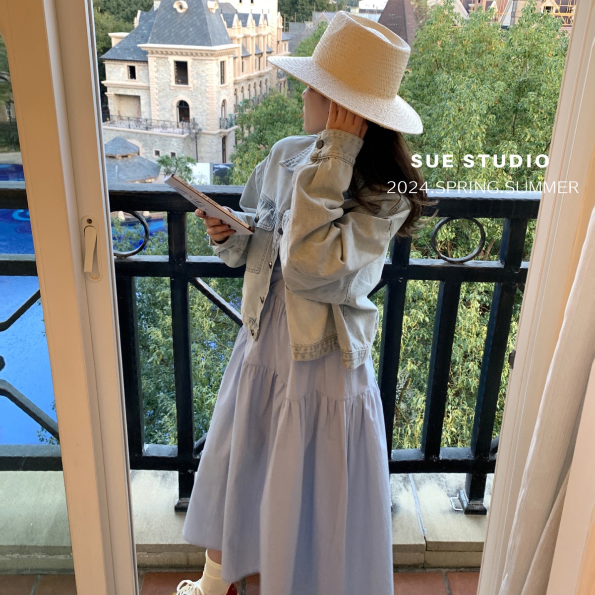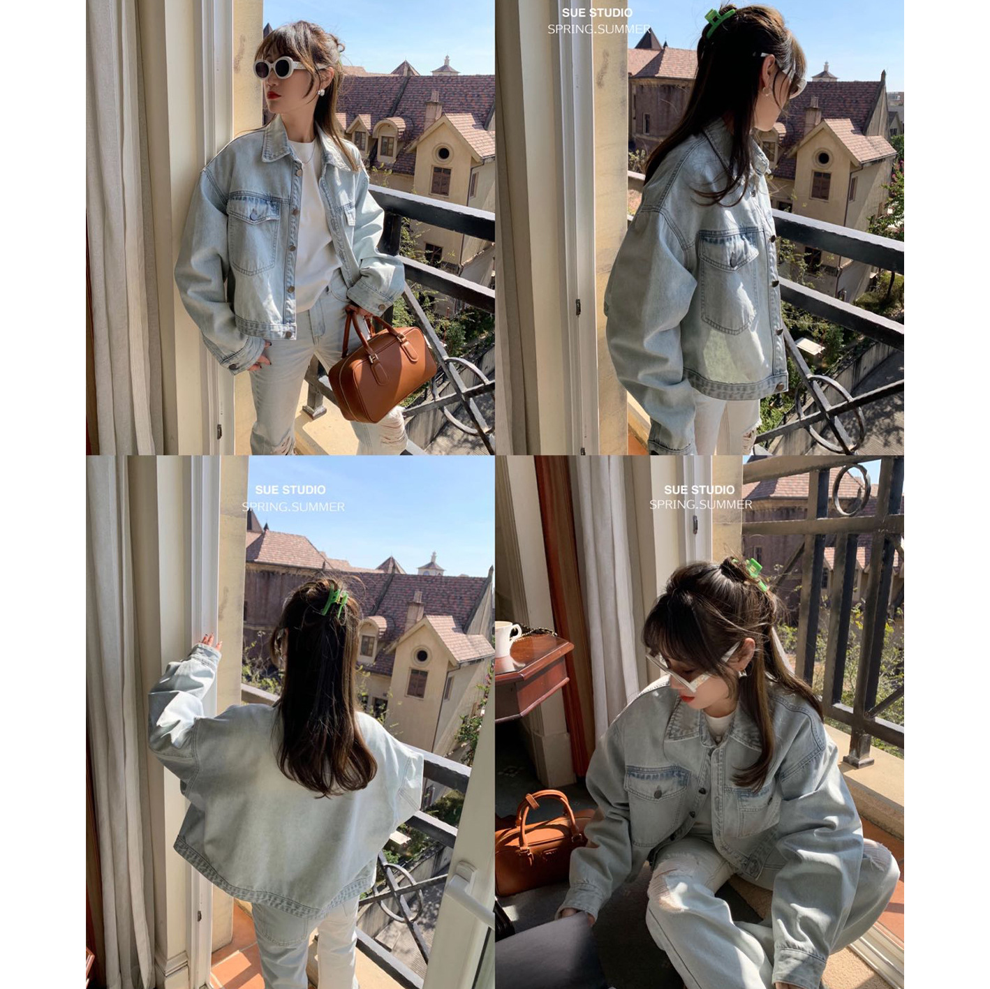 SUE STUDIO2024 spring new fashion brand all-match long sleeve casual Denim coat women washed 89023