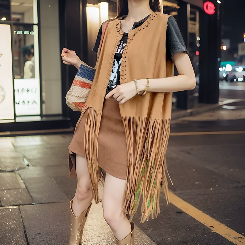 | nameOriginal | Suede fringed cardigan bohemian vest |