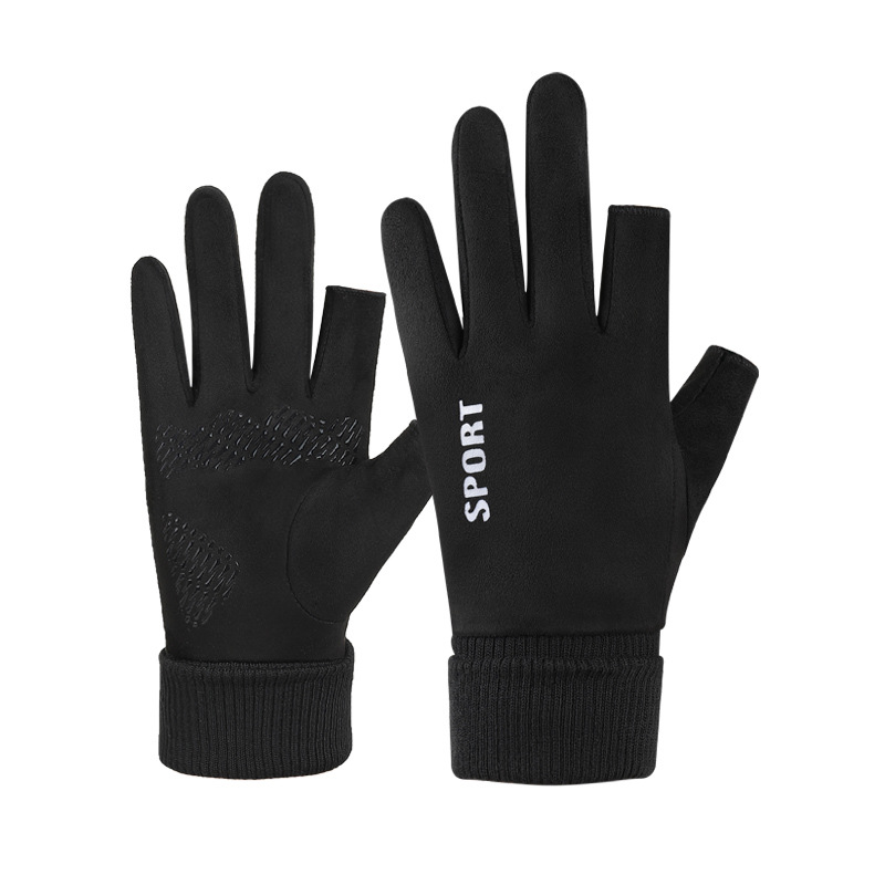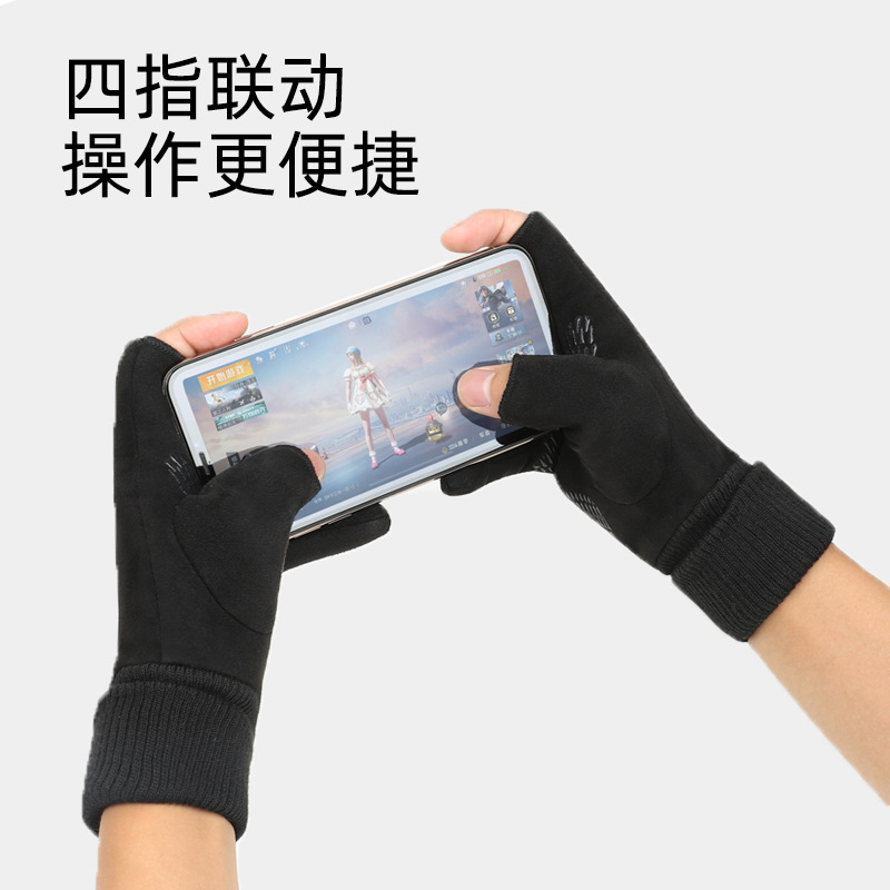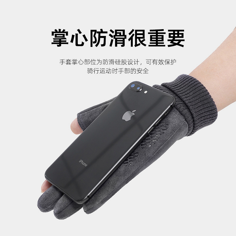 Suede gloves men’s autumn and winter cycling warm fleece-lined touch screen winter cycling leak two finger gloves female half finger