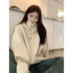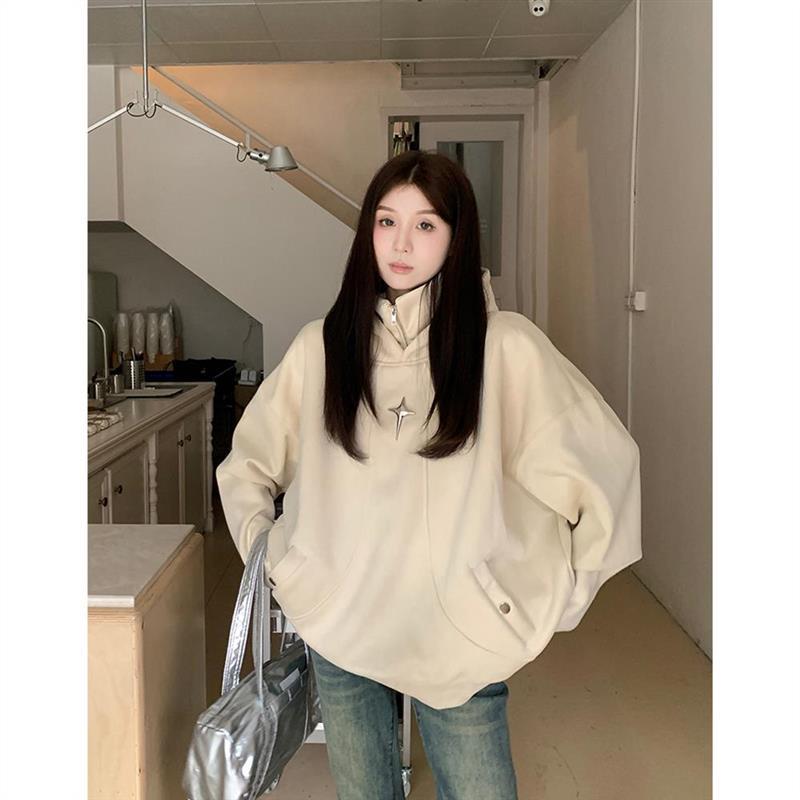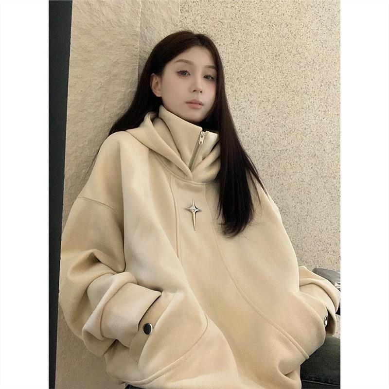 | nameOriginal | Suede hooded sweatshirt coat for women winter 2023 new fleece-lined thickened design loose long sleeve top |