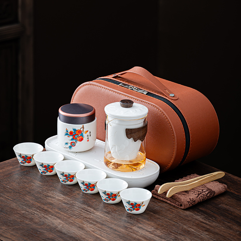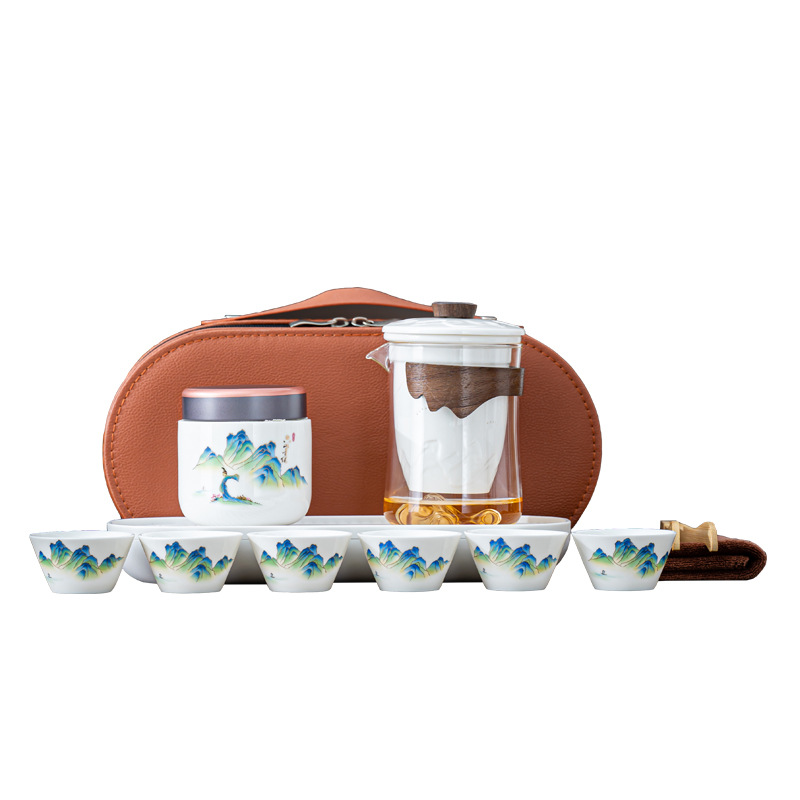 | nameOriginal | Suede Jade White Porcelain Cover Bowl Travel Tea Set Kung Fu Tea Set One Pot Six Cups Activity Business Gift Gift Box |