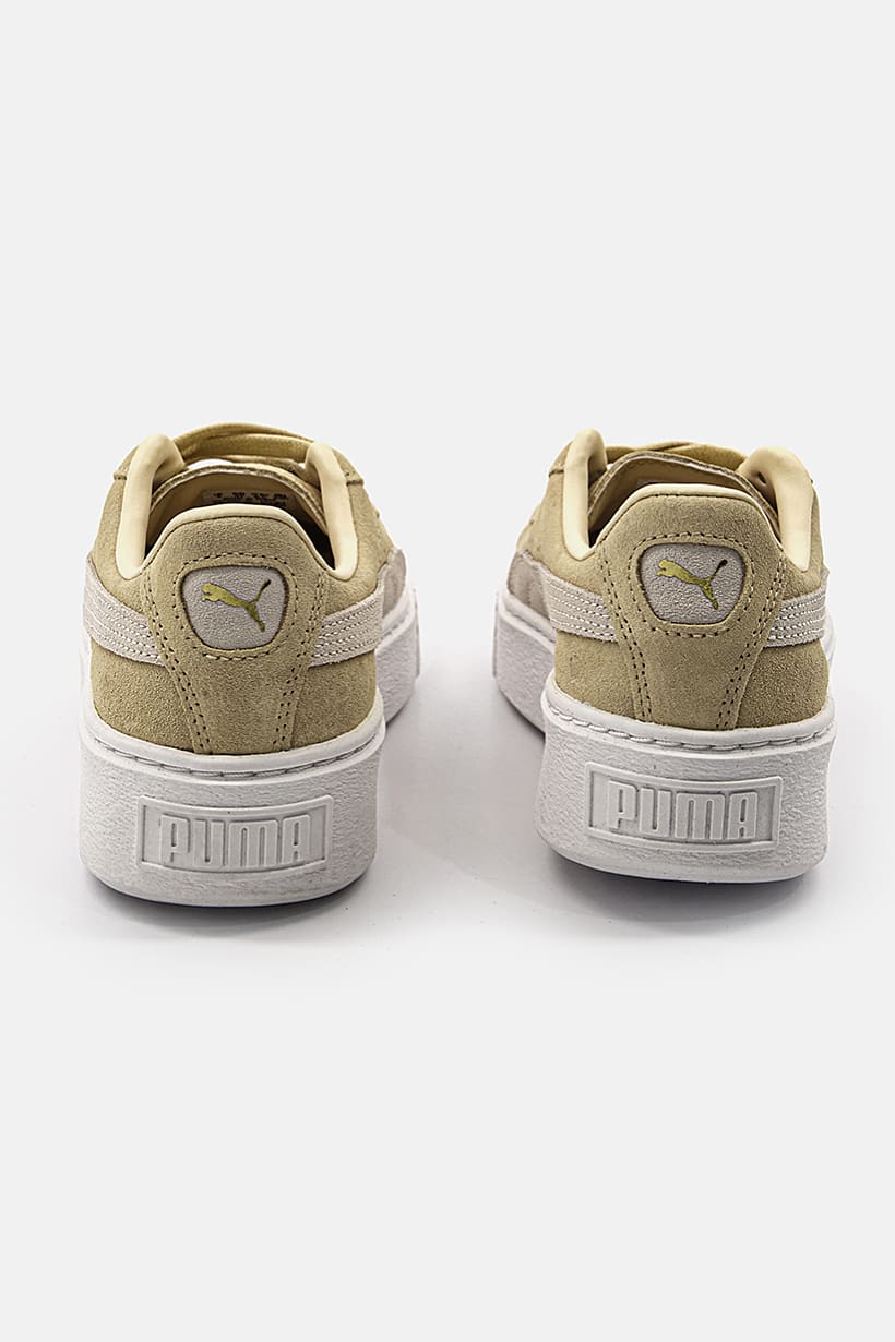 Suede Platform Shoes for Women in Natural Vachetta and White with Lace-Up.