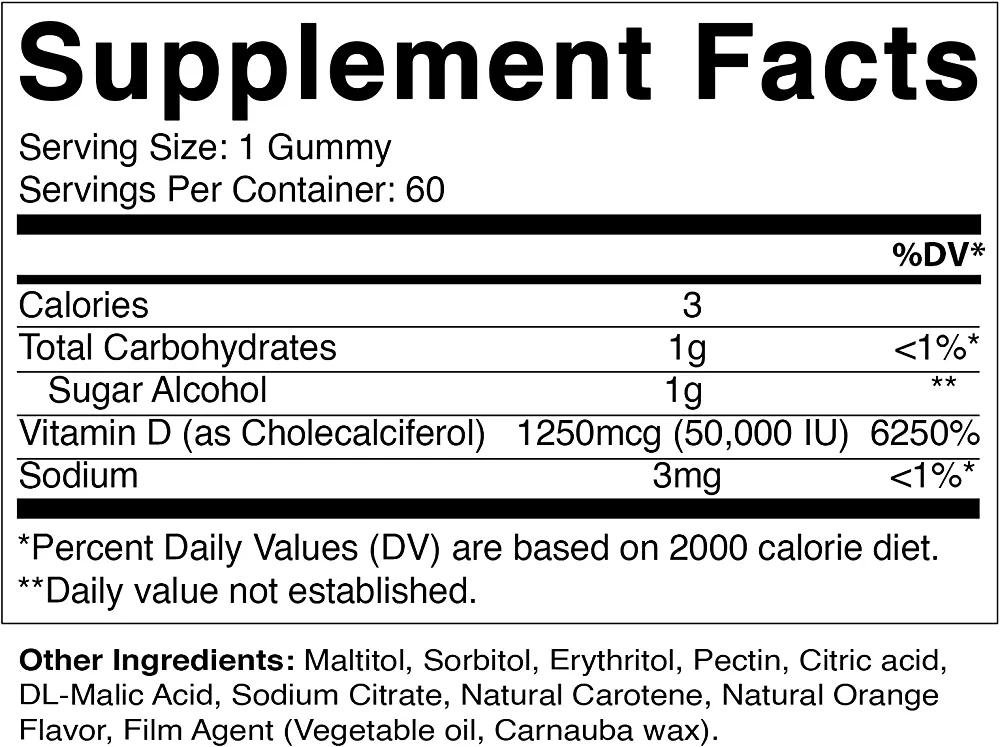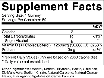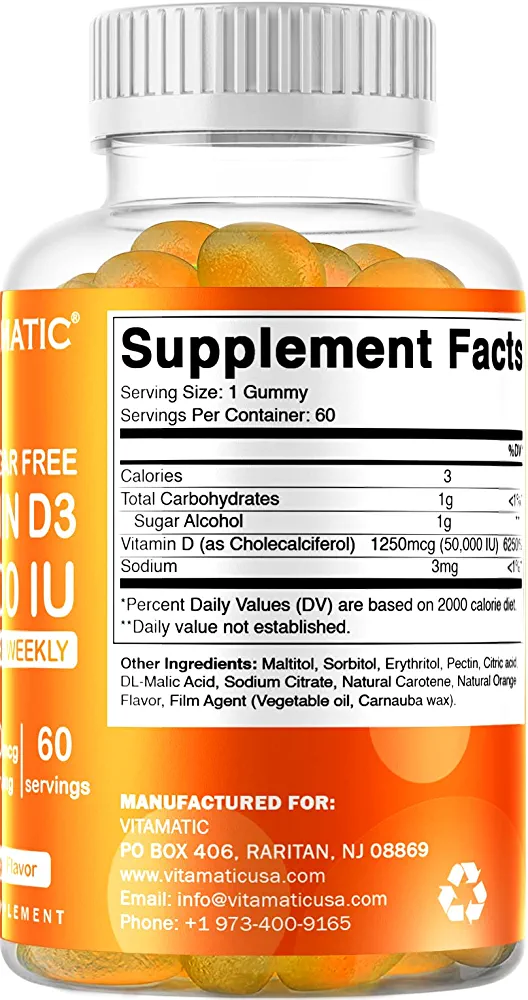 | nameOriginal | Vitamatic Sugar Free Vitamin D3 50,000 IU Weekly Supplement – 60 Pectin Based Gummies – Vitamin D Capsules for Bones, Teeth, and Immune Support  |