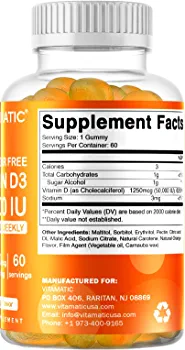 | descriptionOriginal | Description Vitamatic Sugar Free Vitamin D3 50,000 IU Weekly Supplement – 60 Pectin Based Gummies – Vitamin D Capsules for Bones, Teeth, and Immune Support  |