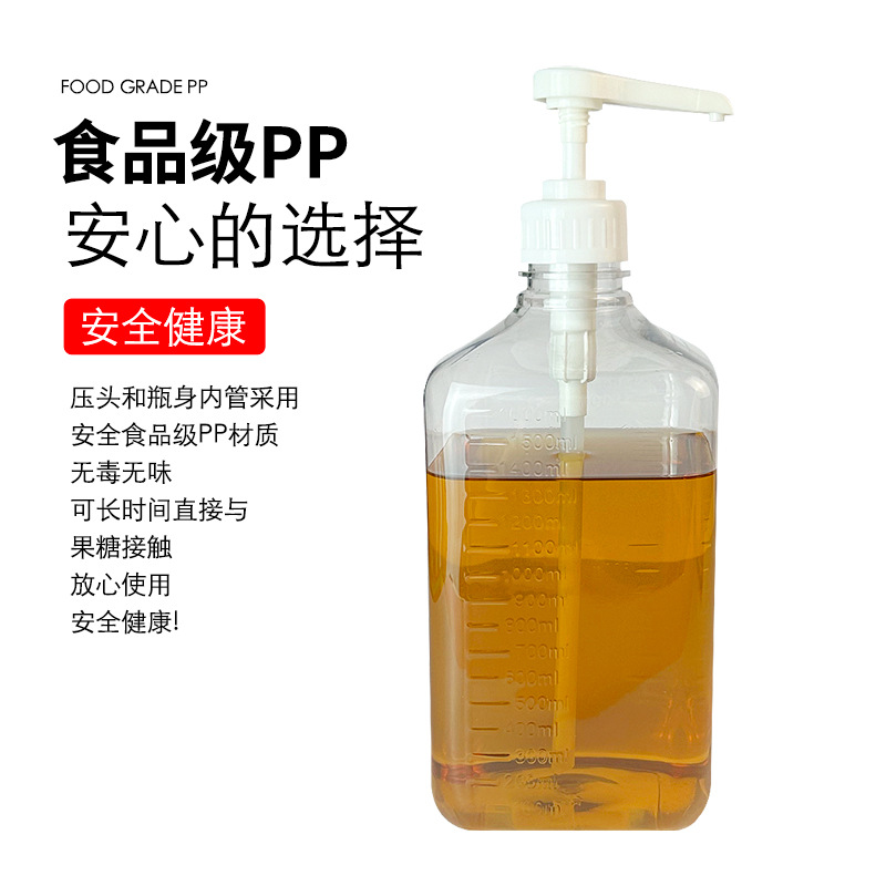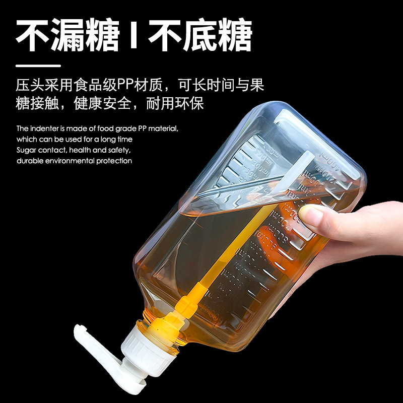 | nameOriginal | Sugar pressure bottle hand pressure glass plastic fructose pressure bottle quantitative extrusion syrup bottle with scale factory wholesale |