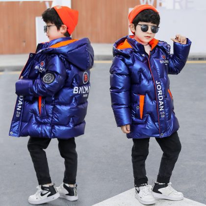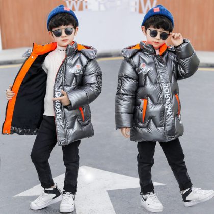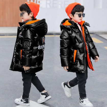 Suit boys’ fleece-lined coat winter 2023 new cotton-padded coat winter cotton-padded coat thickened glossy disposable cotton-padded coat