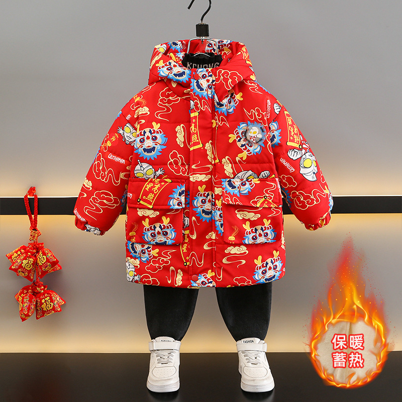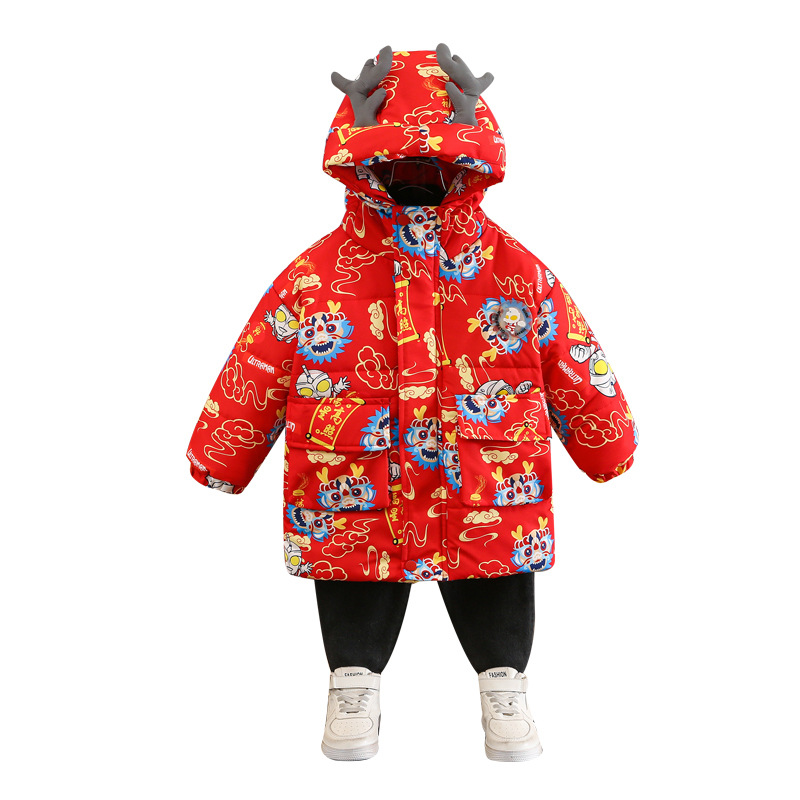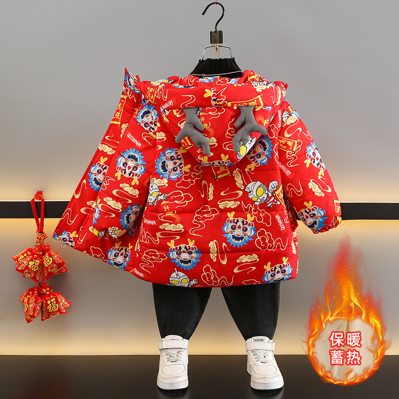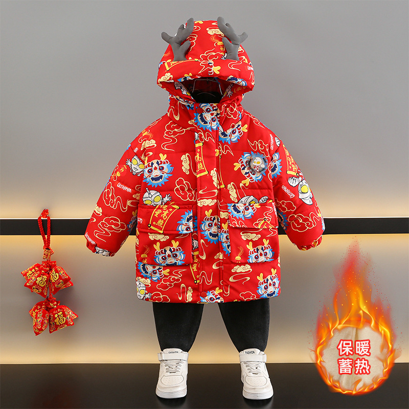 | nameOriginal | Suit New Year clothes boys' cotton-padded clothes fleece-lined thickened mid-length cotton-padded clothes baby girls' Dragon year red festive dress |