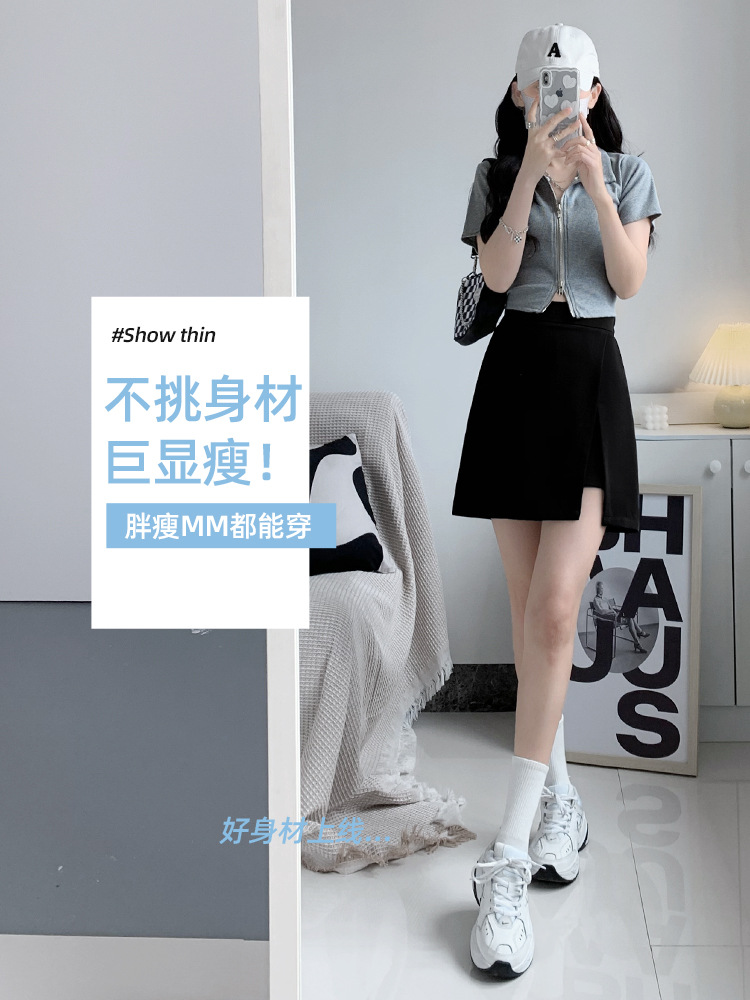 Suit short skirt women’s spring and autumn 2024 New High waist A- line black split chiffon hip pants skirt
