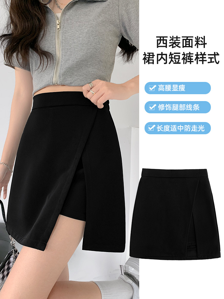 Suit short skirt women's spring and autumn 2024 New High waist A- line black split chiffon hip pants skirt