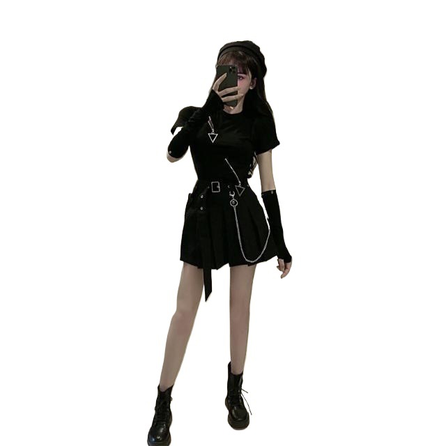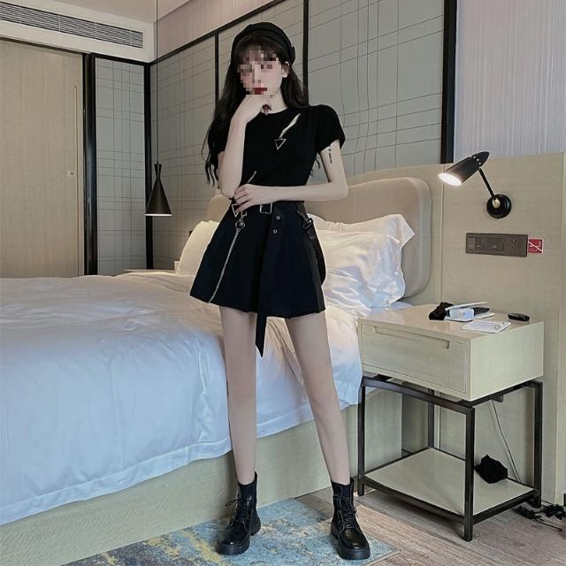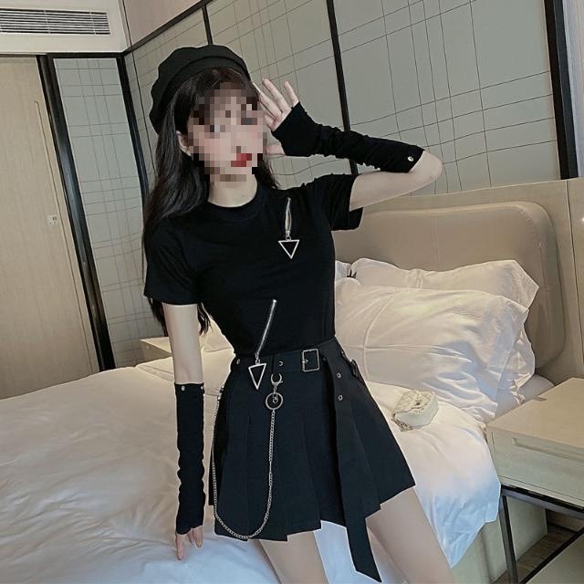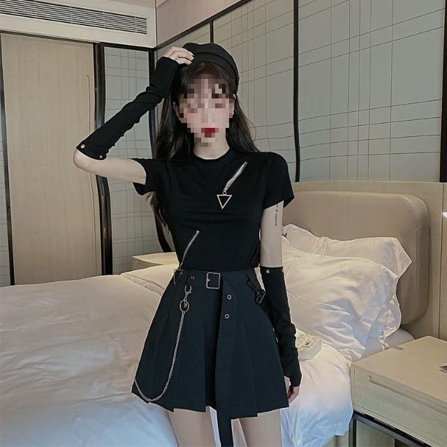 | nameOriginal | suit Women's Summer Dark Fashionable Cool and Handsome Zipper Short-sleeved T-shirt Top High Waist Pleated Skirt Fashion Two-piece Set |