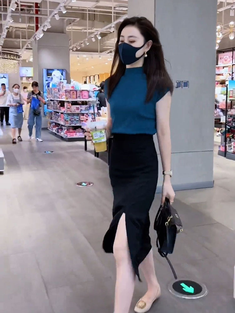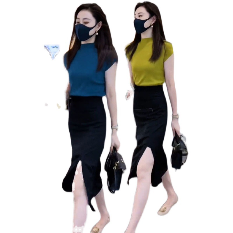 | nameOriginal | suit Women's Summer Stylish Light Mature Elegant Knitted Top Side Split Suit Skirt Fashionable Two-piece Set |