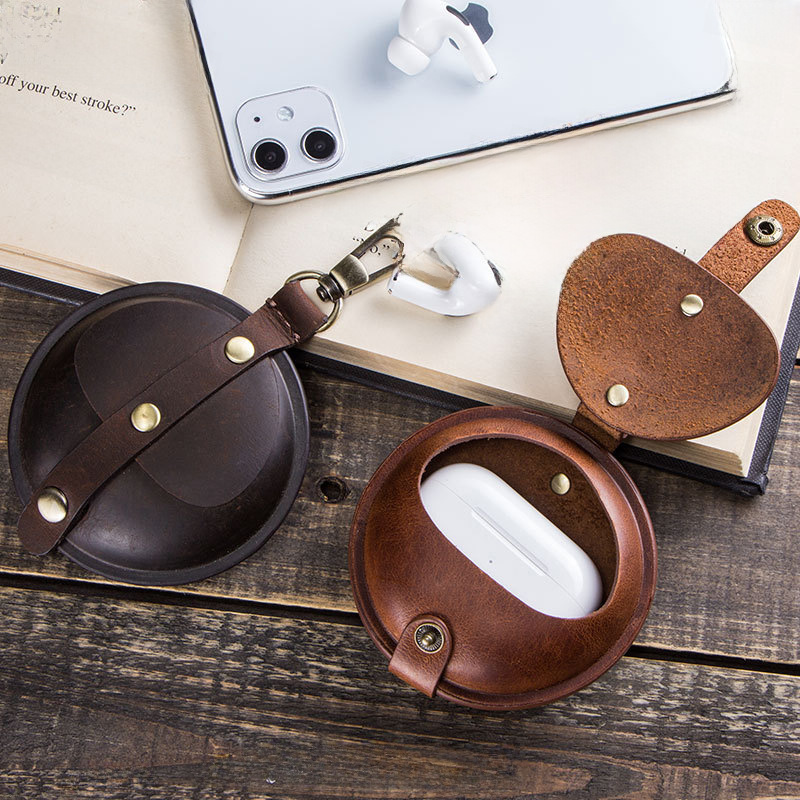 Suitable for airpods pro2 leather protective case round protective case Apple airpods 4 Bluetooth earphone case