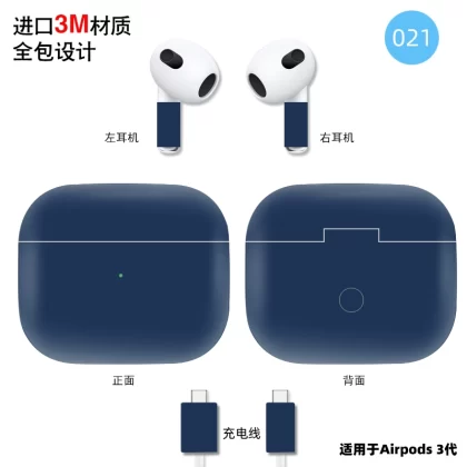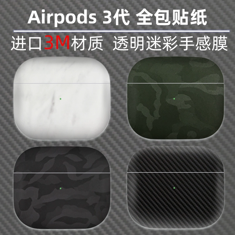 Suitable for AirPods3 stickers all -inclusive charging warehouse, film, headset, camouflage carbon transparent matte 3 generation new