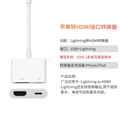 | nameOriginal | Suitable for Apple 12 mobile phone iPad high-definition adapter cable lightning to hdmi connection projector TV hdml conversion connector |