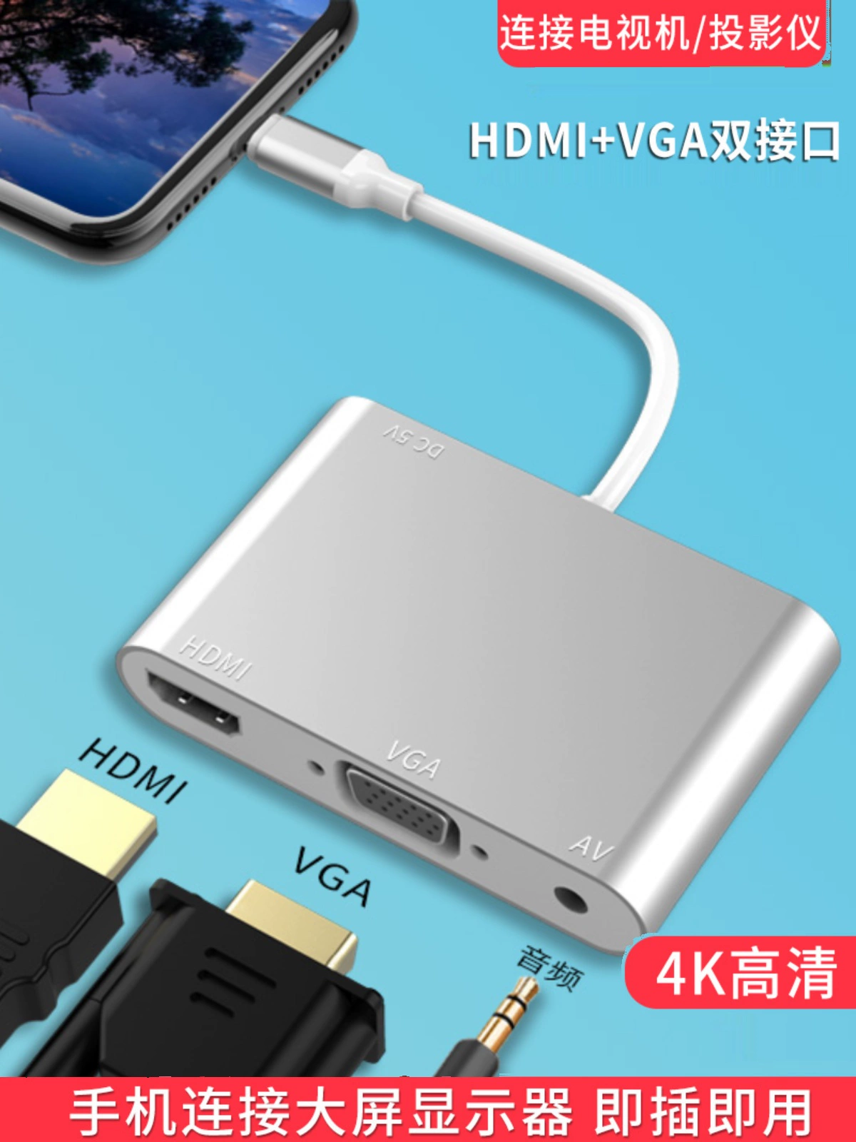 Suitable for Apple 13/12 X to HDMI/VGA converter ipad HD adapter cable tablet phone connected to projection