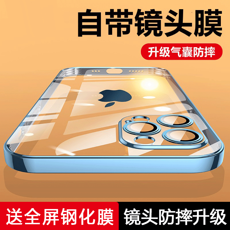 Suitable for Apple 13 mobile phone case 14 new 15 transparent iphone 13 advanced 14 plus feeling ultra-thin 13 promax all-inclusive anti-fall 12 comes with lens film 16 all-in-one 14pro protective case