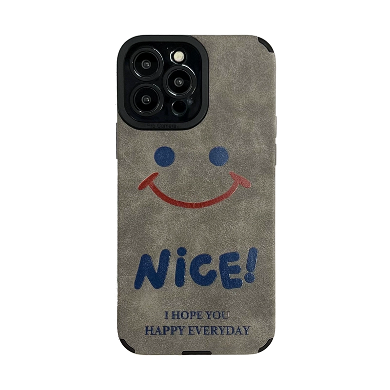 Suitable for Apple 14promax mobile phone case suede leather Japanese and Korean smiley face iphone13 gray bottom case high-end sense 12pro max anti-fouling x dirt-resistant 11 niche 15 trendy brand xr female new model male 16