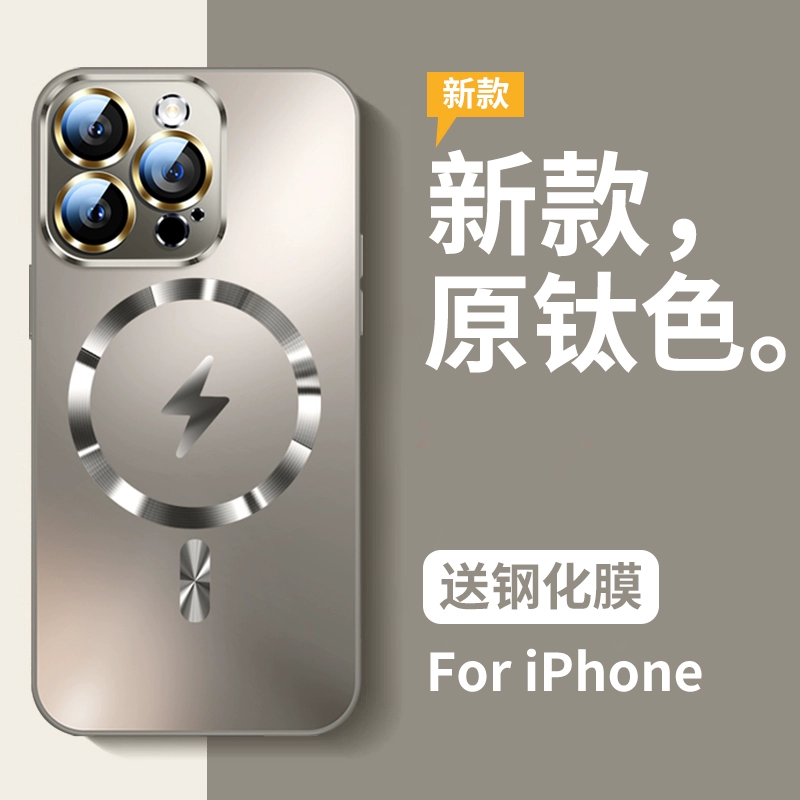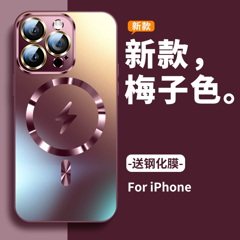 | nameOriginal | Suitable for Apple 15 mobile phone case, new iPhone 14promax Lightning MagSafe magnetic suction 11plus glass lens all-inclusive 13pro high-end frosted 12 silicone female anti-fall hard shell male |
