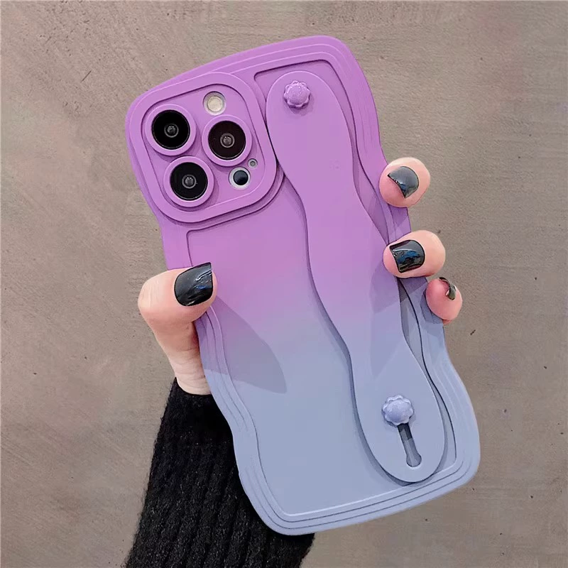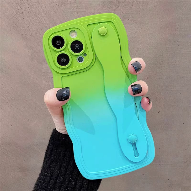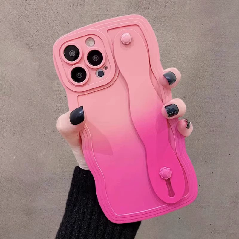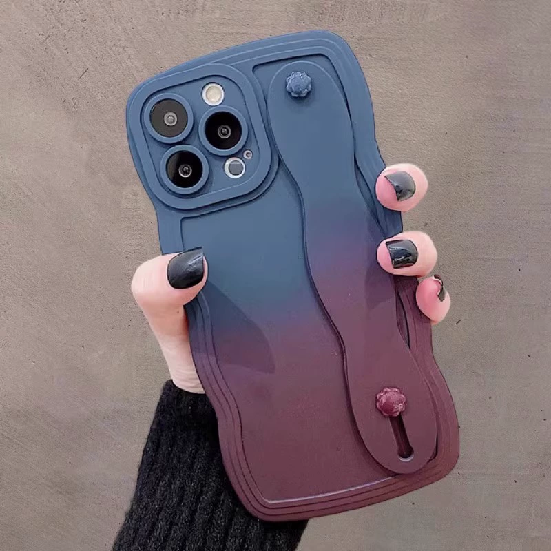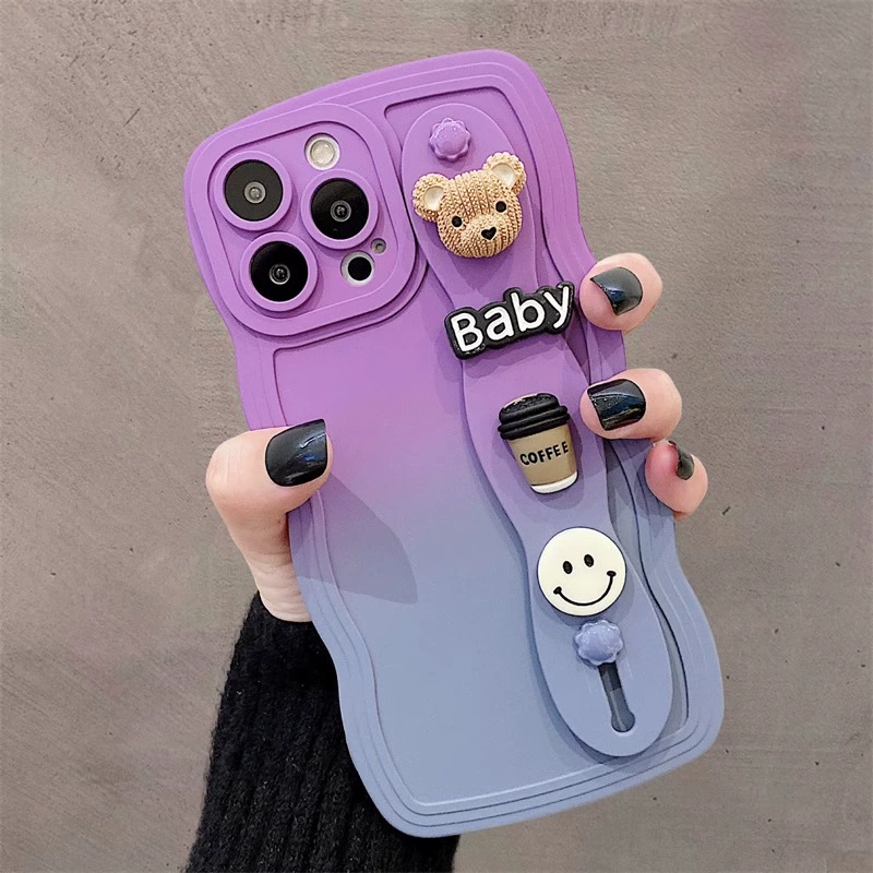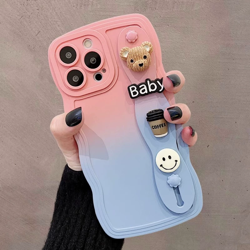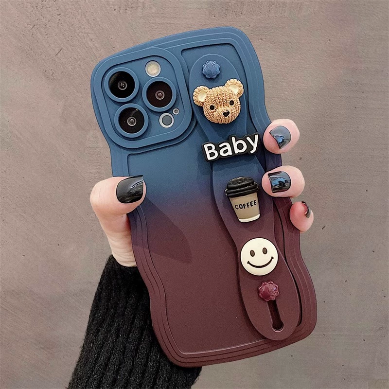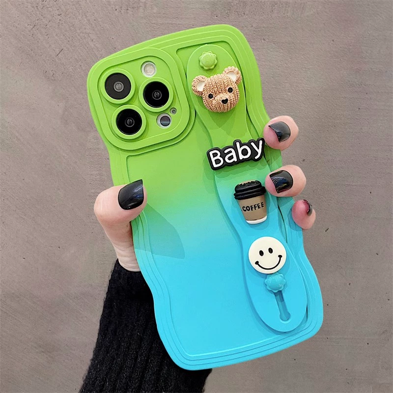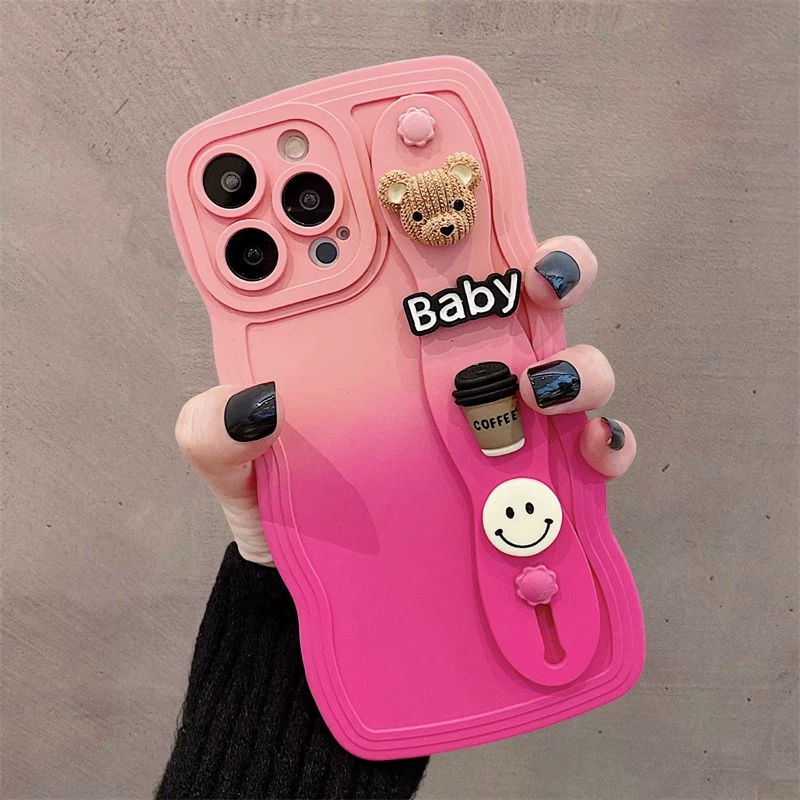 Suitable for Apple 15 promax mobile phone case 16 gradient smiley bear iphone 13 pro protective cover 12 three-dimensional 11 wrist strap 14 promax lens all-inclusive anti-fall wavy frame 15 high-end sense