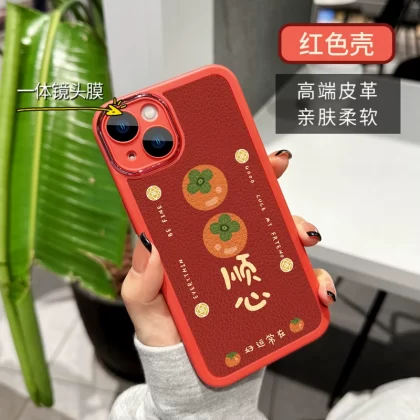 | nameOriginal | Suitable for Apple 15 ProMax mobile phone case iPhone 14 lambskin 12 New Year's model 16 with lens film all-inclusive max Dragon Year pro personality creative pm persimmon good luck girls red 13 |