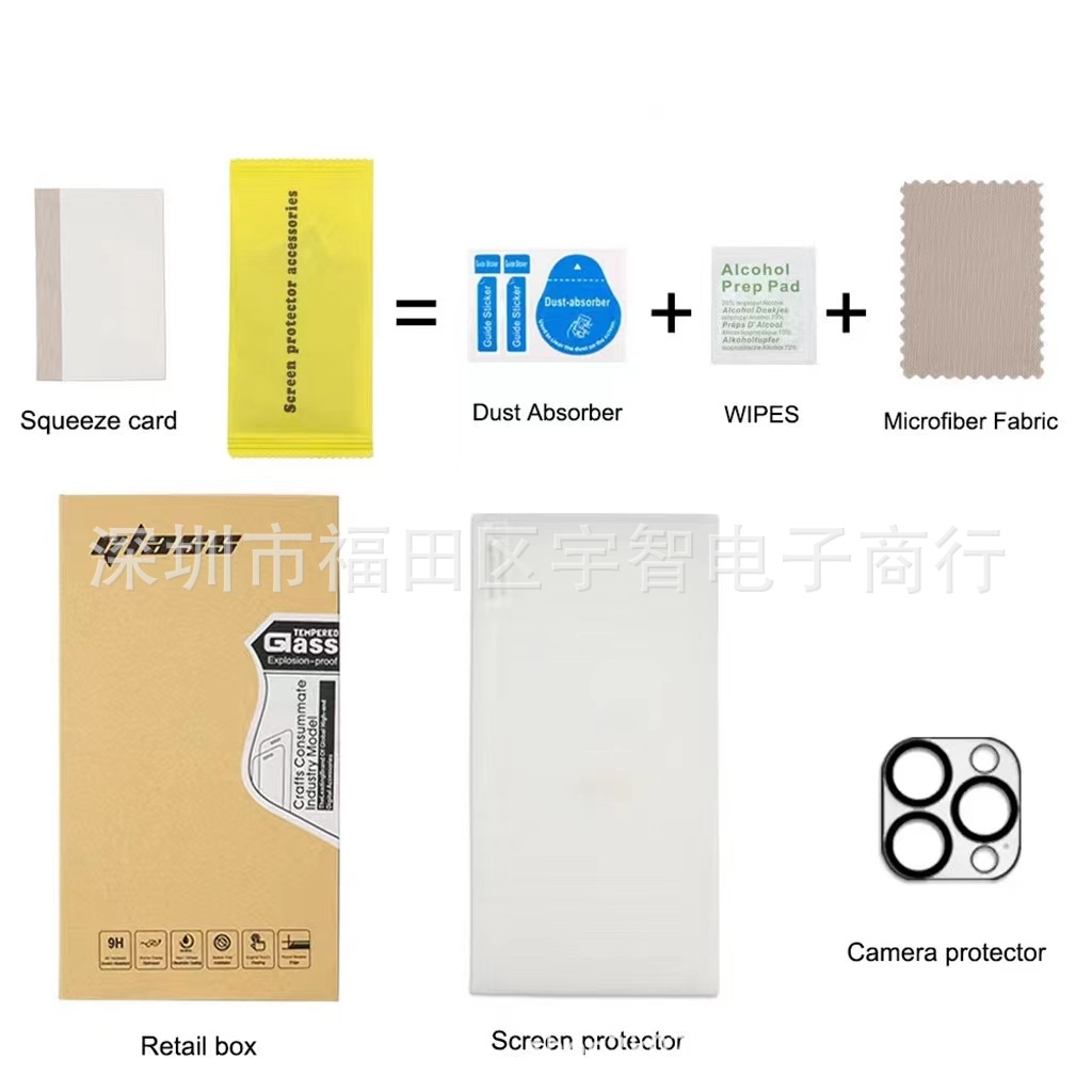 | nameOriginal | Suitable for Apple 15PRO silk screen tempered film 13PROMAX suit lens film 12PROMAX mobile phone protective film |