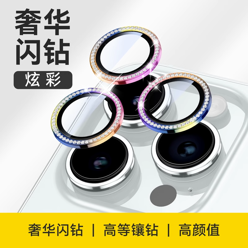 | nameOriginal | Suitable for Apple 15promax flash diamond iphone14 lens film sticker 13 new model 12 mobile phone lens sticker 11 high-end plus lens cover 15promax 13 rear camera 14 protection ring |