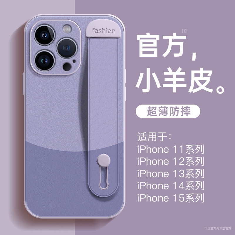 Suitable for Apple 15Promax mobile phone case 2024 new wristband holder iPhone14 plain leather lens all-inclusive Plus anti-fall high-end 13Pro set men's 12 high-end 11 women's creative max