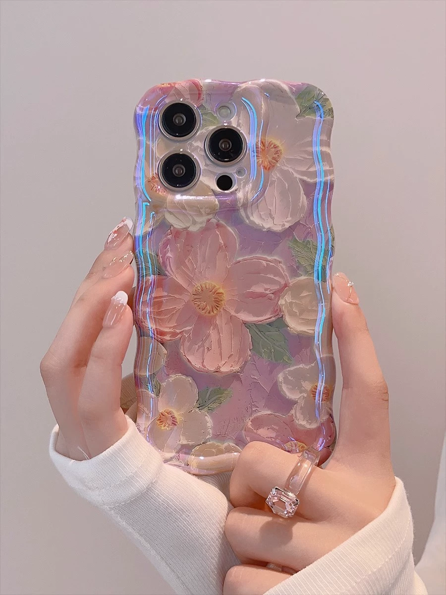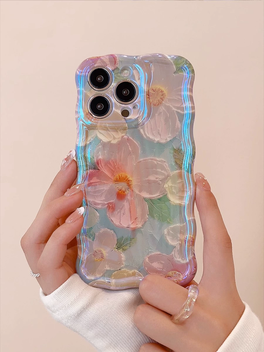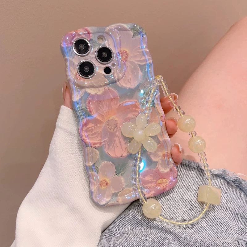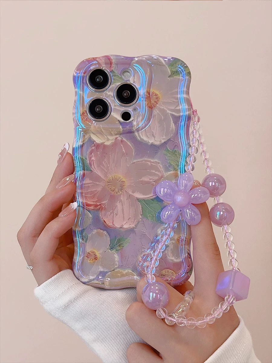 Suitable for Apple 15promax mobile phone case iphone16 laser blue light flower belt lanyard 13 goddess new style 12 high-end light luxury 11promax lens all-inclusive anti-fall 14pm niche high-end sense