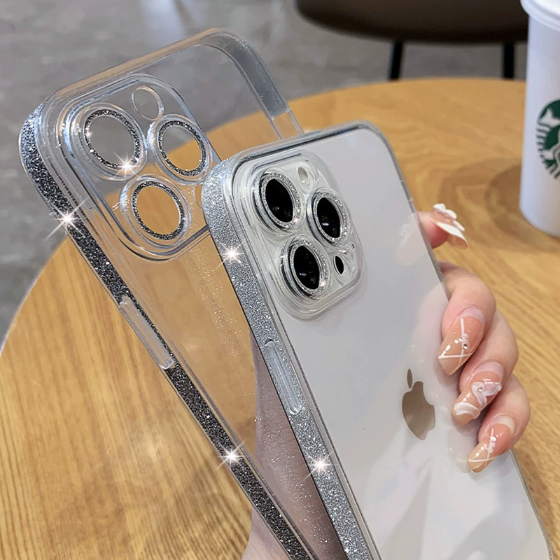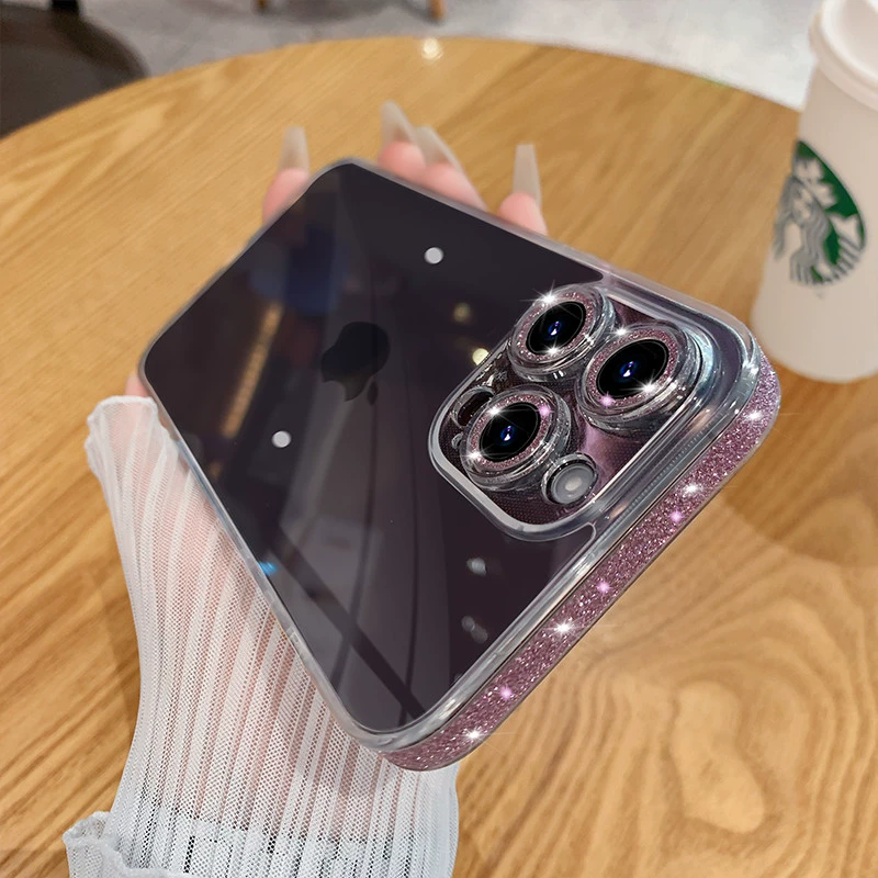 Suitable for Apple 15promax mobile phone case iphone16pm lens all-inclusive 14 anti-fall 12 protective cover 13 glitter frame new tempered glass transparent goddess color girl creative 15 ultra-thin