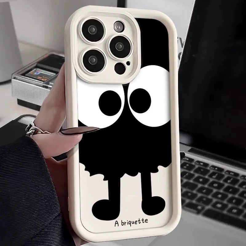 Applicable to Apple 16promax mobile phone case large -eyed coal ball text iphone15promax skin sensor silicone 14Pro painted 13pm silicone 16 simple 15Pro cartoon 16plus protective cover