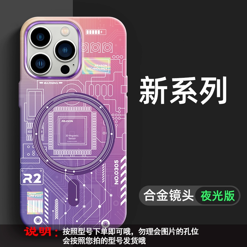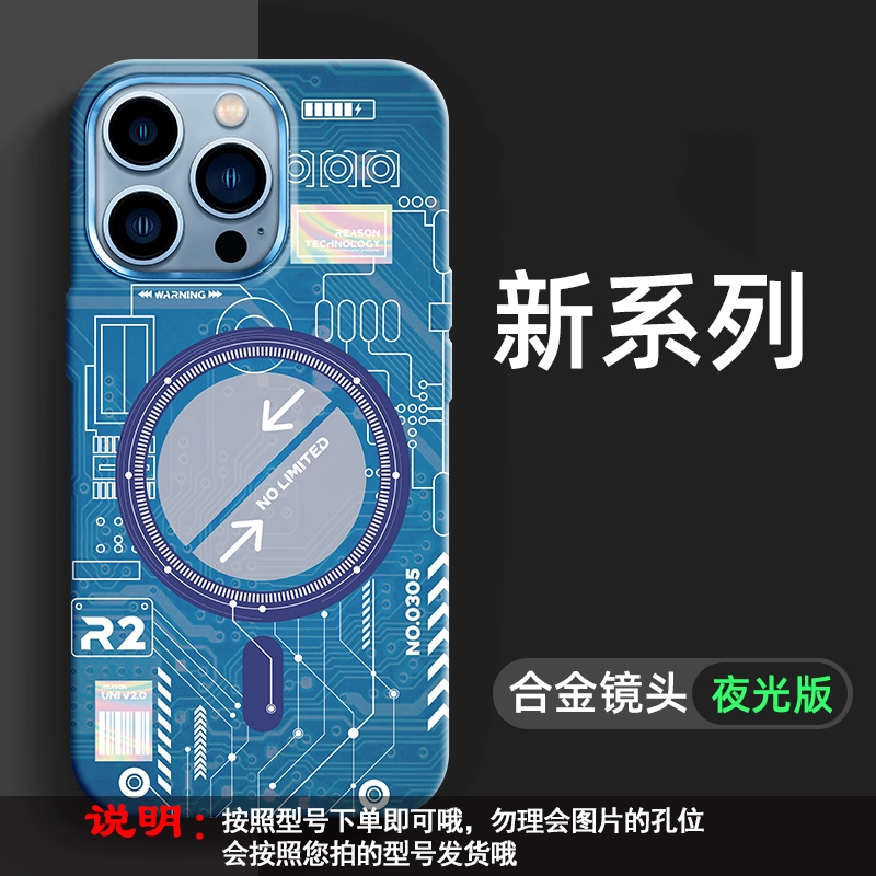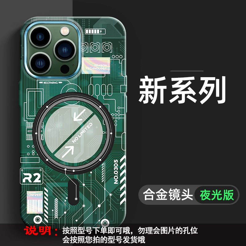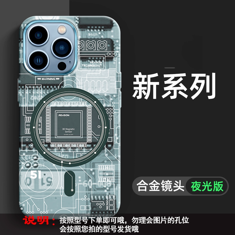 | nameOriginal | Suitable for Apple 15ProMax trendy brand high-end new metal lens 14pro luminous magnetic phone case Magsafe technology circuit board 13 anti-fall matte 12PM protective cover |