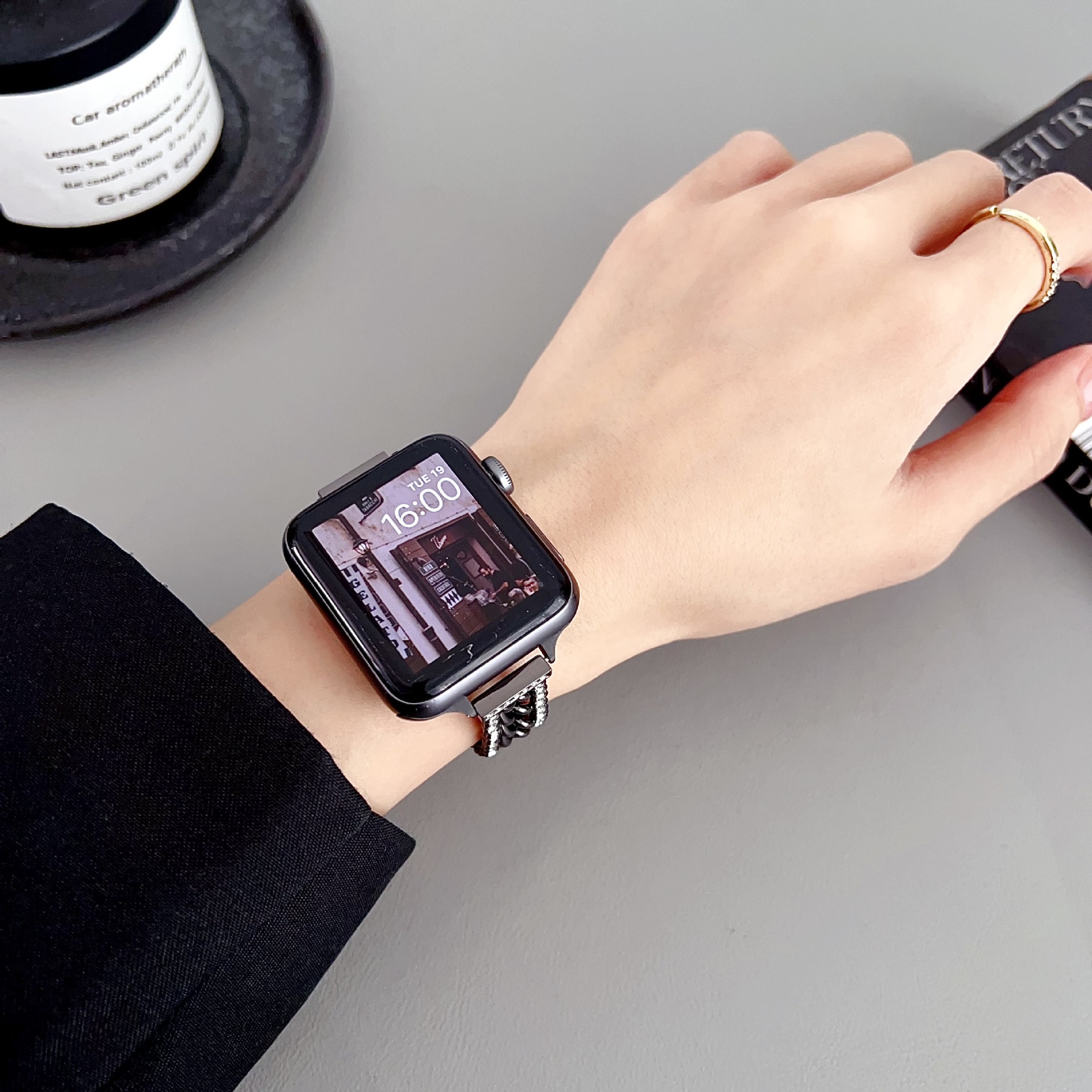 | nameOriginal | Suitable for Apple 456789 generation watch wrist strap Apple watch Double Row Diamond denim chain metal strap |