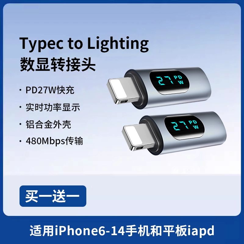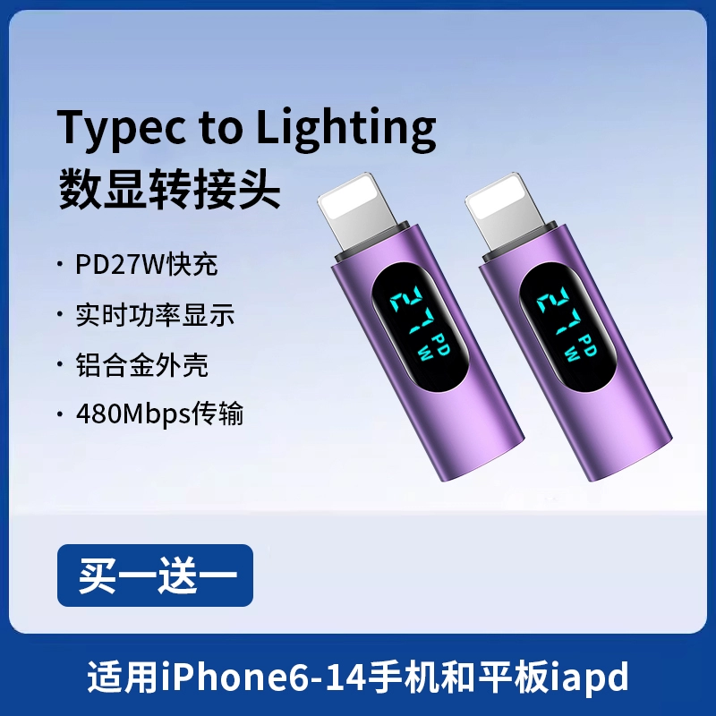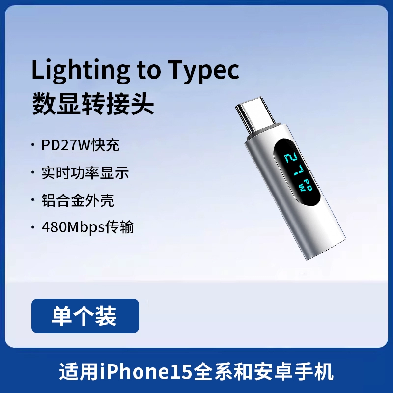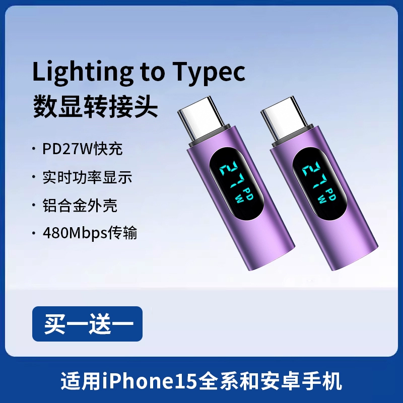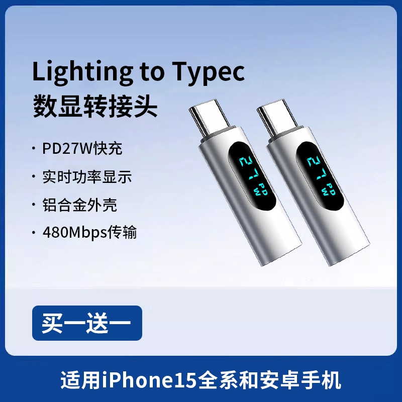 Suitable for Apple adapter digital display power Typec to lightning adapter iPhone15 charging cable double-ended CtoC interface 27W fast charge 14 promax mobile phone 13 converter 12