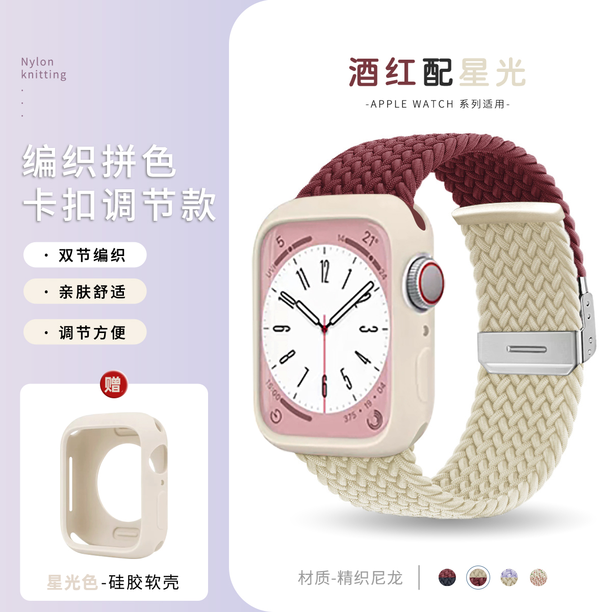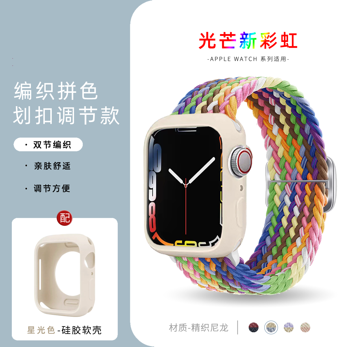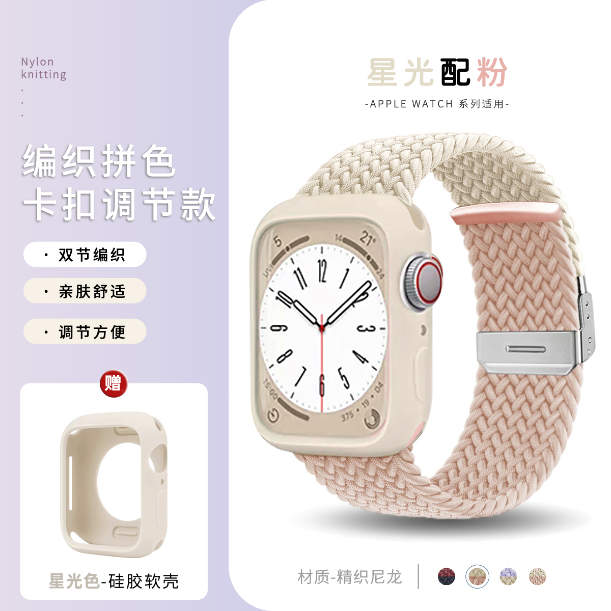 Suitable for Apple apple watch9 nylon iwatch woven s8 watch Ultra strap s7 new s5 summer SE accessories 7/6 sports 5/4/3/2 watch strap women's protective case s6