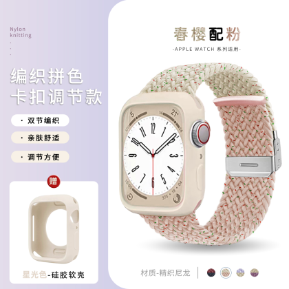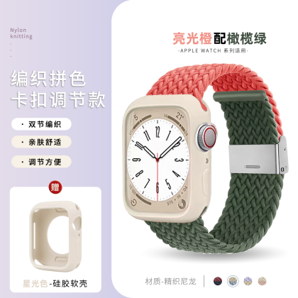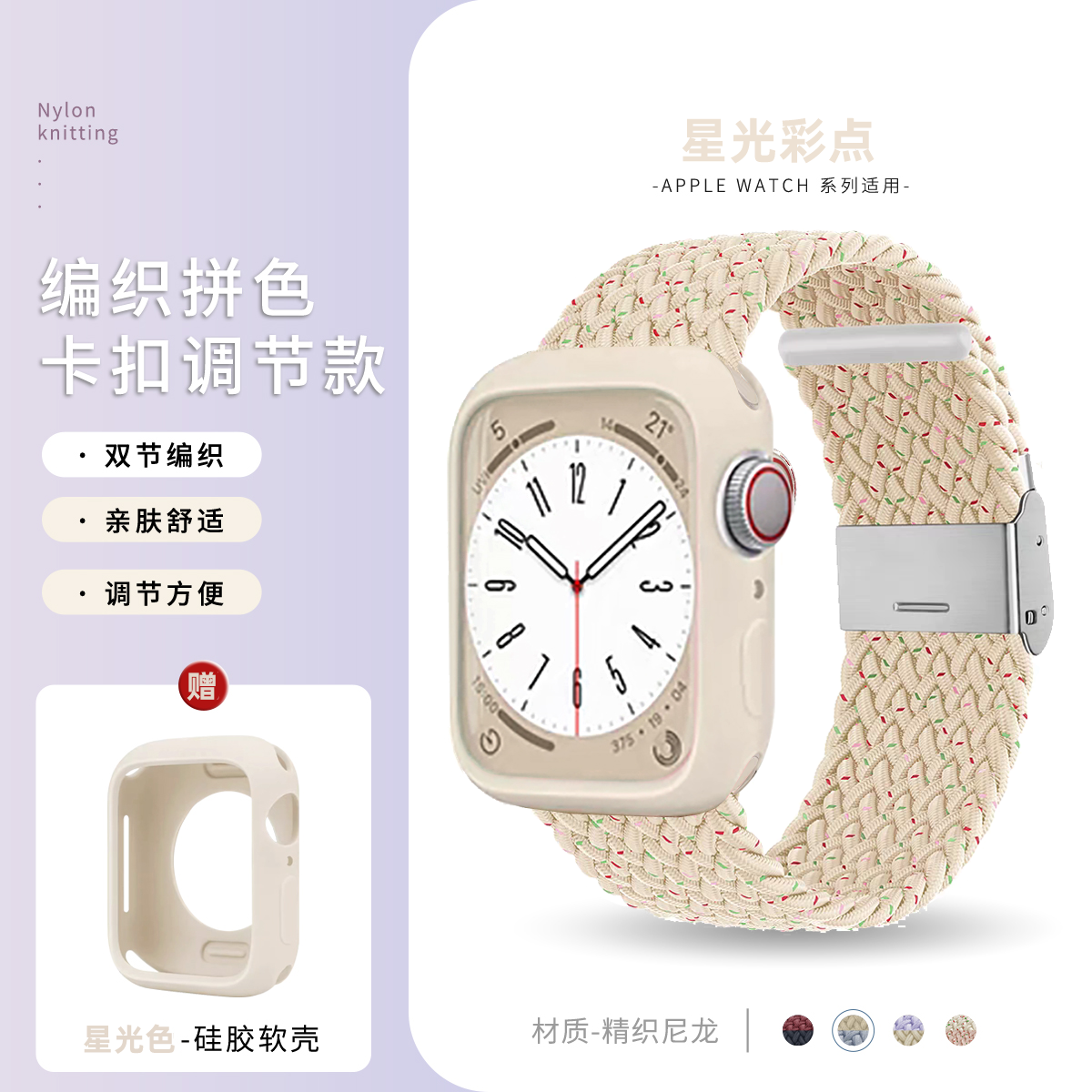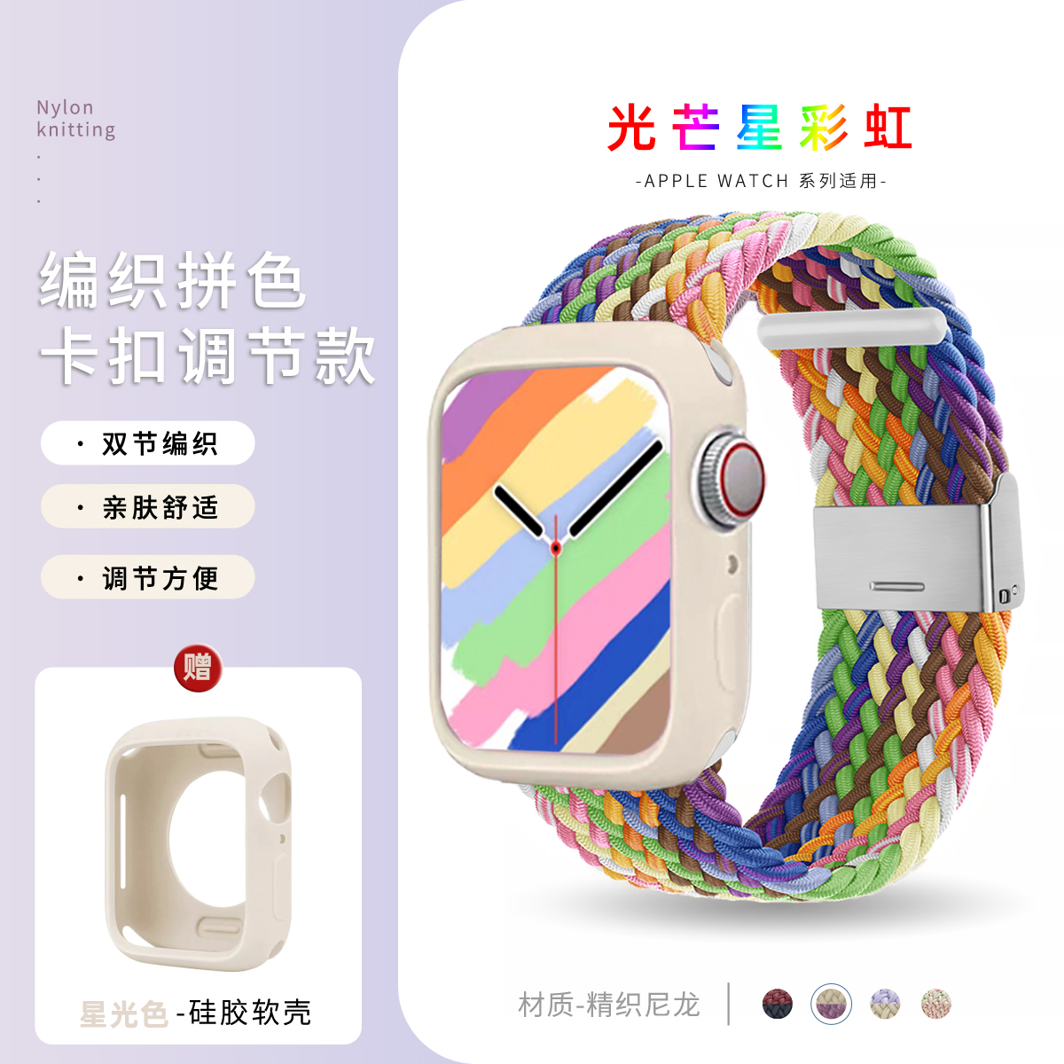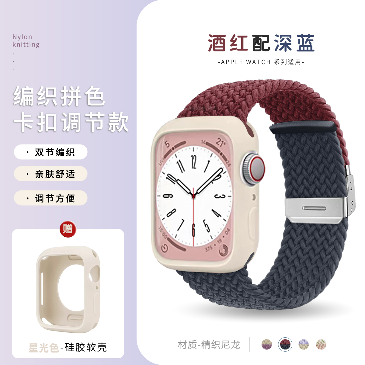 Suitable for Apple apple watch9 nylon iwatch woven s8 watch Ultra strap s7 new s5 summer SE accessories 7/6 sports 5/4/3/2 watch strap women's protective case s6